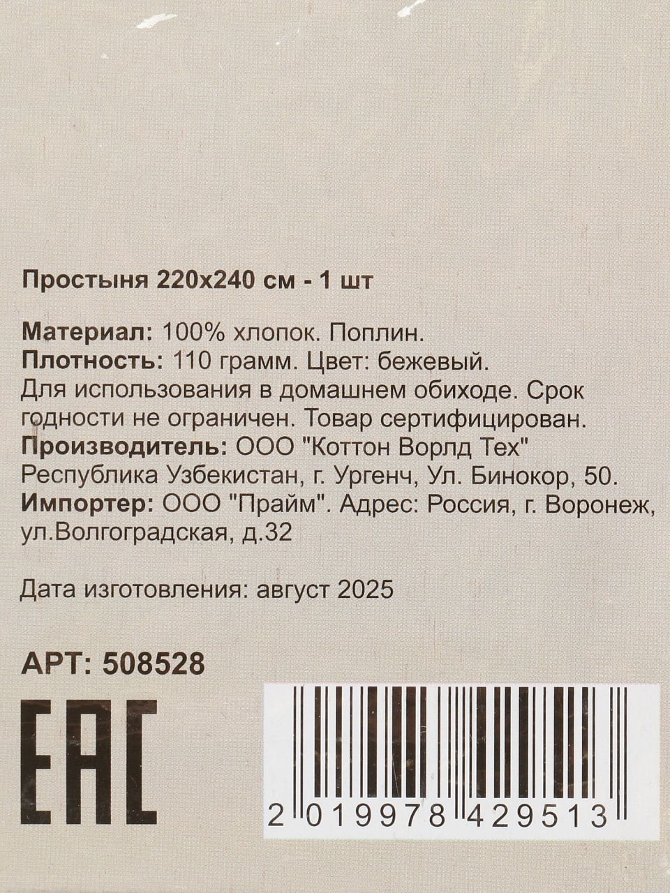 Если вы ищете, что лучше для дачи или гостевого дома — эта простыня подходит для разных сценариев: она не скатывается, сохраняет мягкость после стирки и легко гладится. В отличие от синтетических аналогов, хлопковый поплин не электризуется и поддерживает оптимальный микроклимат во время сна. Для подарка — универсальный бежевый цвет впишется в любой интерьер. Простыня без резинки, что удобно для классических и нестандартных матрасов.