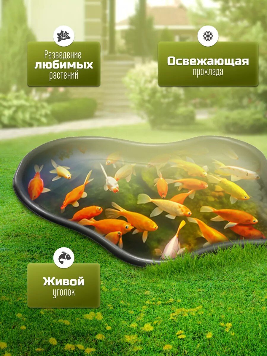 Пруд садовый декоративный Байкал, 270 л, черный, Полимерлист — стильное решение для создания живописного водоема на участке. Идеален для оформления ландшафта, украшения дачного пространства, организации зоны отдыха или воплощения идей для домашнего сада. Благодаря современному дизайну и универсальному черному цвету, пруд гармонично впишется в любой ландшафт, подчеркнув индивидуальность территории и добавив уюта.