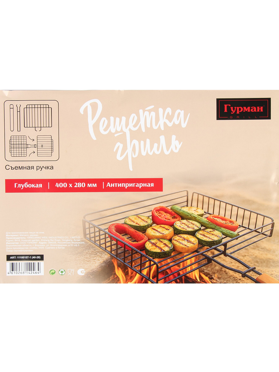 В отличие от аналогов без антипригарного слоя, эта модель позволяет готовить даже маринованные овощи или рыбу без риска прилипания. Складная рукоятка из дерева не нагревается, а сама решетка занимает минимум места при хранении. Если вы ищете, какую решетку купить недорого для дачи, обратите внимание на артикул 11100107-1(40-28) — он сочетает практичность и долговечность. Пользователи часто спрашивают: «подходит ли для гриля или открытого огня» — да, благодаря устойчивости к высоким температурам и прочной фиксации продуктов.