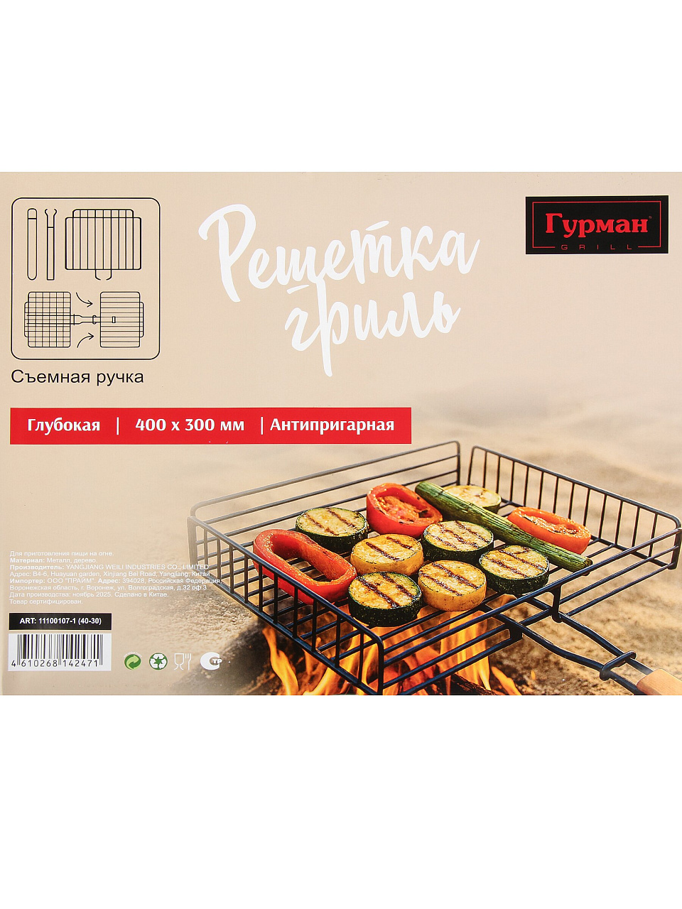 Размер 400x300x70 мм — оптимален для большинства мангалов и грилей, подходит для приготовления стейков, рыбы и овощей.