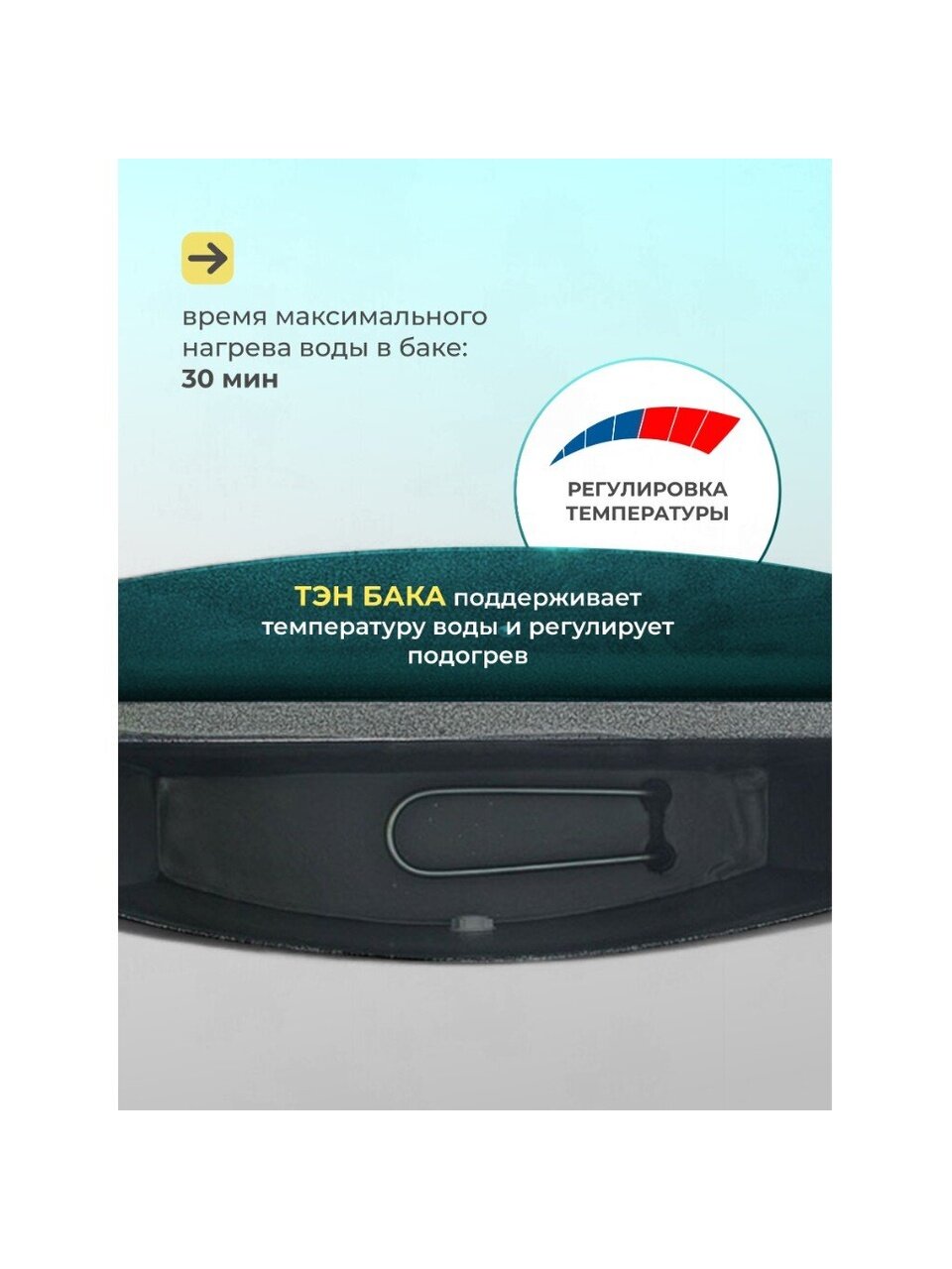 - Время максимального нагрева воды в баке: 30 мин.