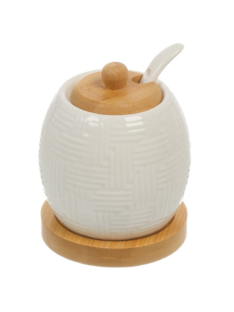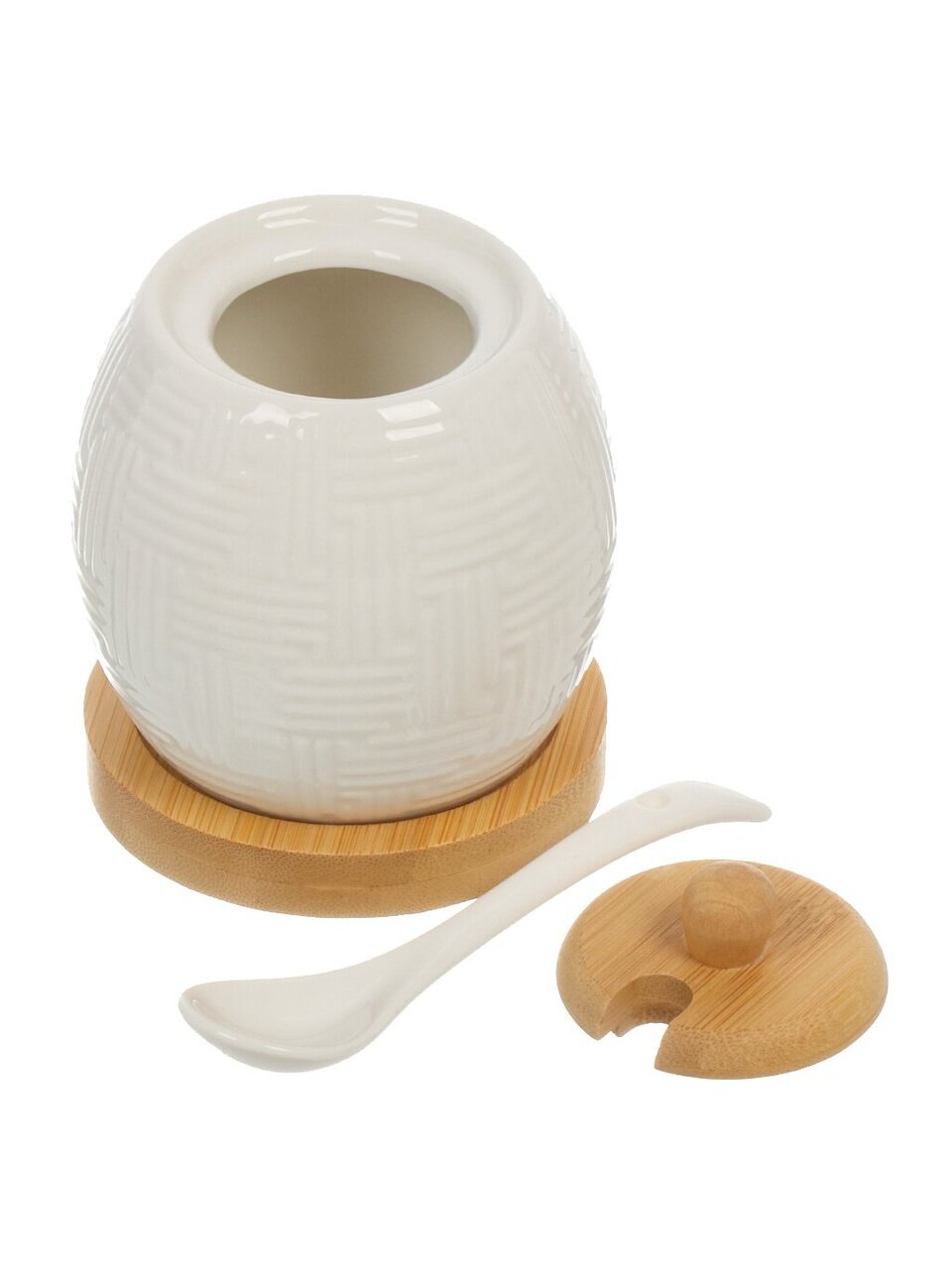 Сахарница Lefard Native – это оригинальное сочетание эстетики естественных форм белого фарфора и универсальной функциональности бамбука.