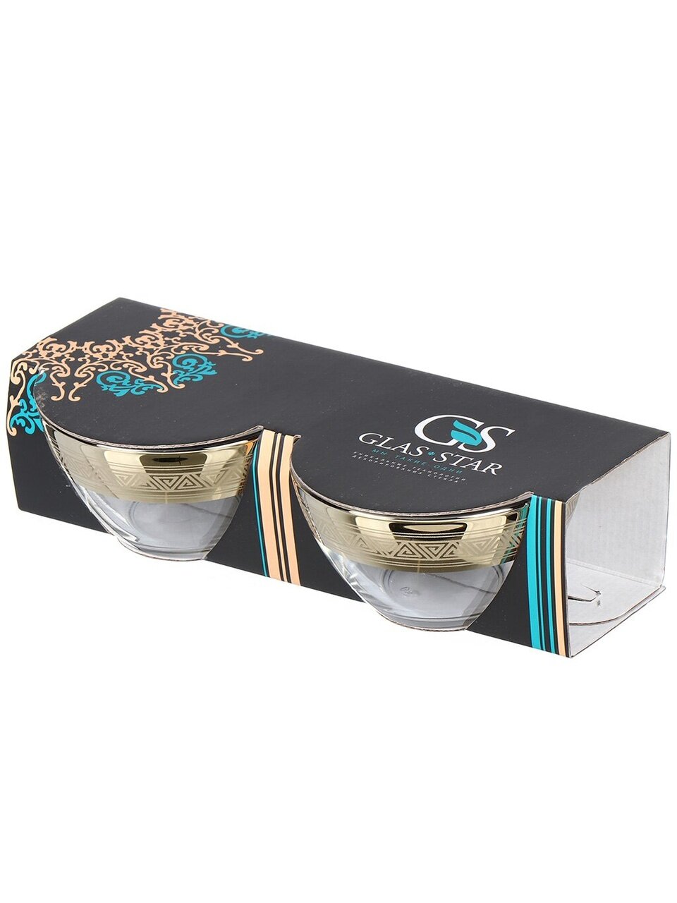 Салатники Glasstar «Магия» — набор из 2 стеклянных чаш, 6×6 см, с золотой окантовкой и абстрактным рисунком. Элегантное решение для сервировки и подарка.