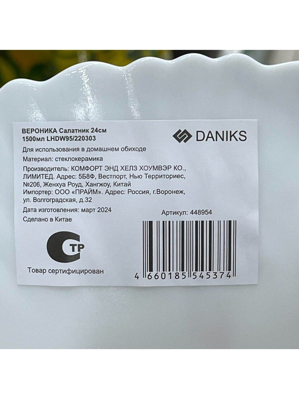 Салатник из стеклокерамики Daniks Вероника 1,5 л: идеален для сервировки, безопасен для СВЧ, стильный акцент для кухни или дачи по выгодной цене.