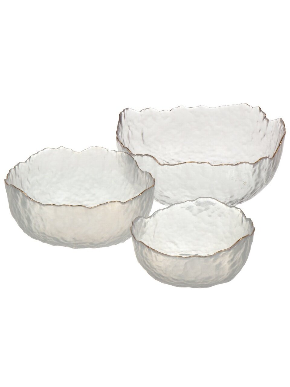 Набор салатников Daniks Алмаз — 3 стеклянные миски (13, 17, 20 см) с золотой окантовкой: стиль сервировки, идеальный подарок, выгодная цена
