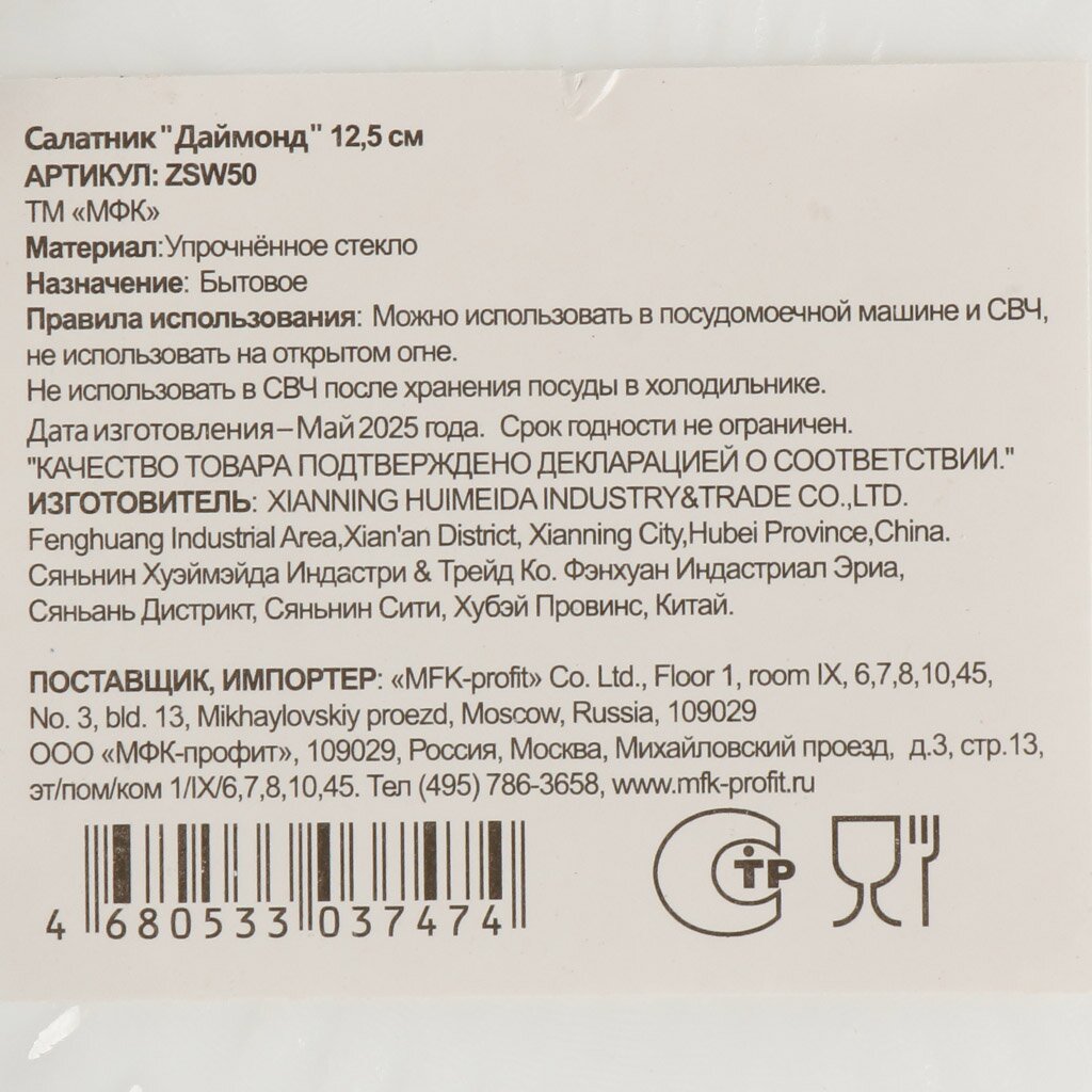 Салатник стеклокерамический МФК Даймонд 12,5 см — стильное решение для сервировки и хранения: прочность, универсальность, доступная цена.