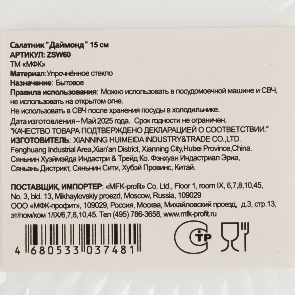 Какой размер салатника МФК Даймонд?