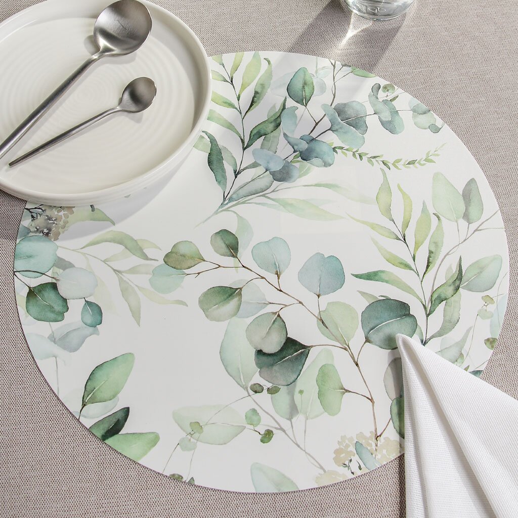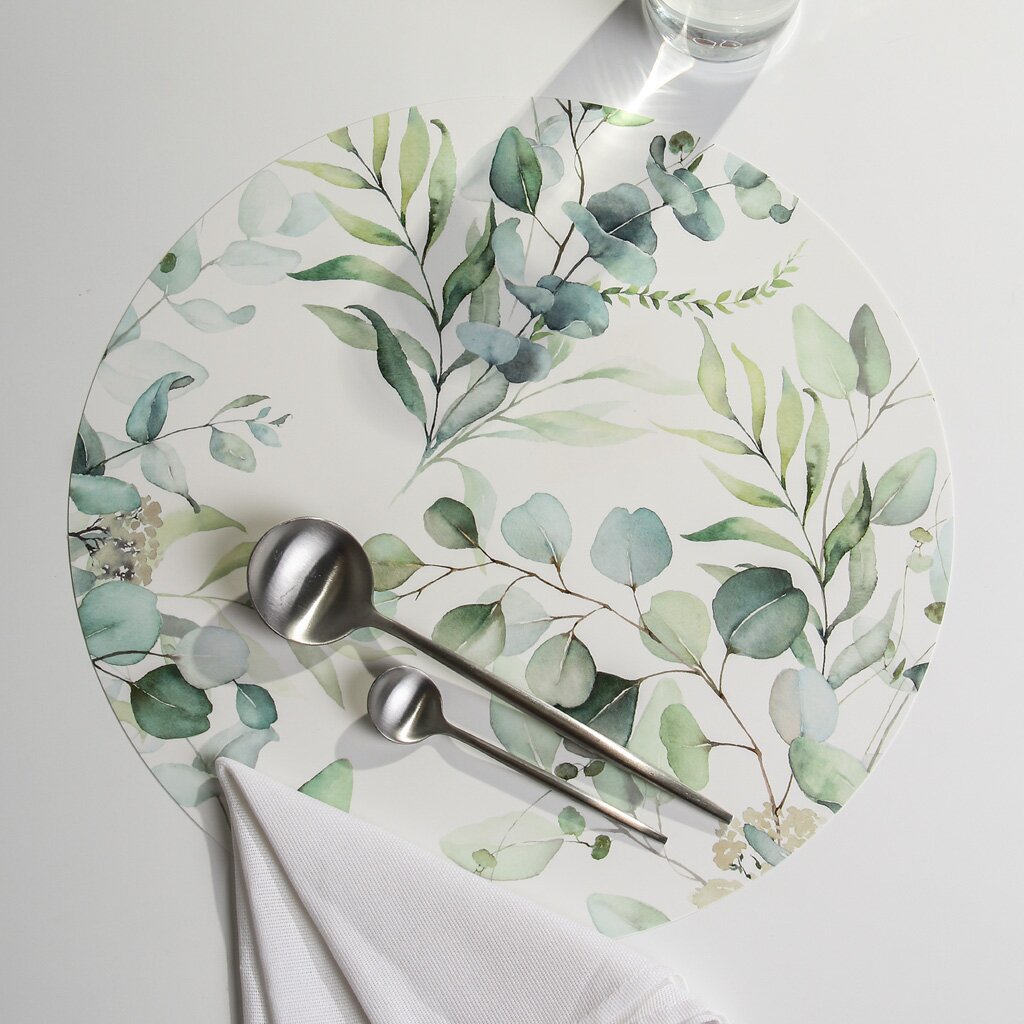 Круглая пластиковая салфетка 36х36 см с дизайном «Веточки» — стильная защита стола от пятен и царапин. Идеально для дома, дачи или подарка.