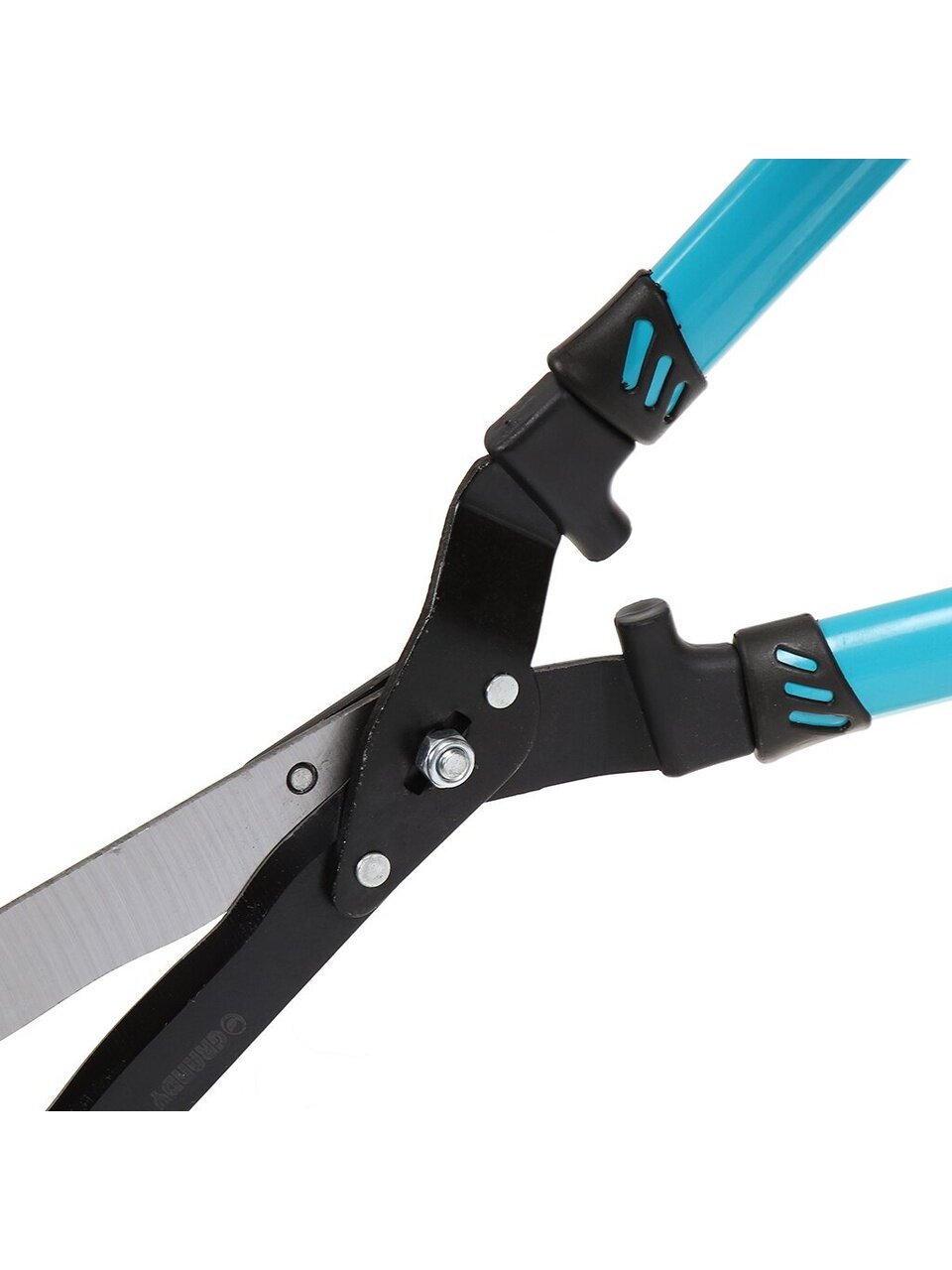 Кусторез с металлическими рукоятками, оснащенными двухкомпонентными ручками, и волнистыми ножницеобразными лезвиями. Овальная форма придает рукояткам дополнительную прочность на изгиб. Предназначен для формирования кроны деревьев и кустарников и рассчитан на работу с ветвями диаметром до 10 мм. Волнистые лезвия дополнительно удерживают ветку во время работы.