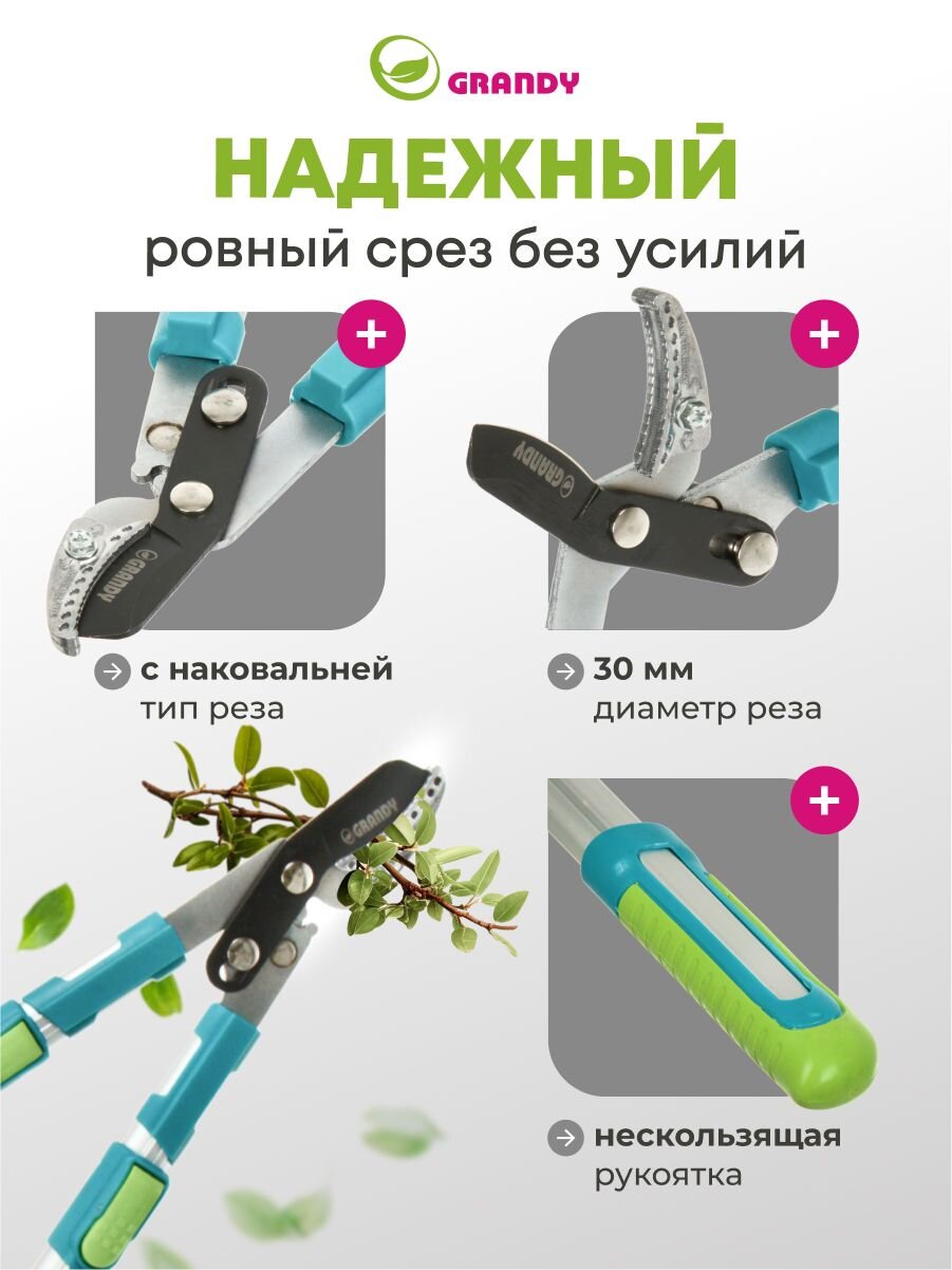 Вы можете приобрести «Сучкорез для веток, 740 мм, с наковальней, Grandy, телескопическая штанга, рукоятка алюминий, 402518» и другие товары в нашем интернет-магазине в Тамбове по низким ценам и с бесплатным самовывозом.