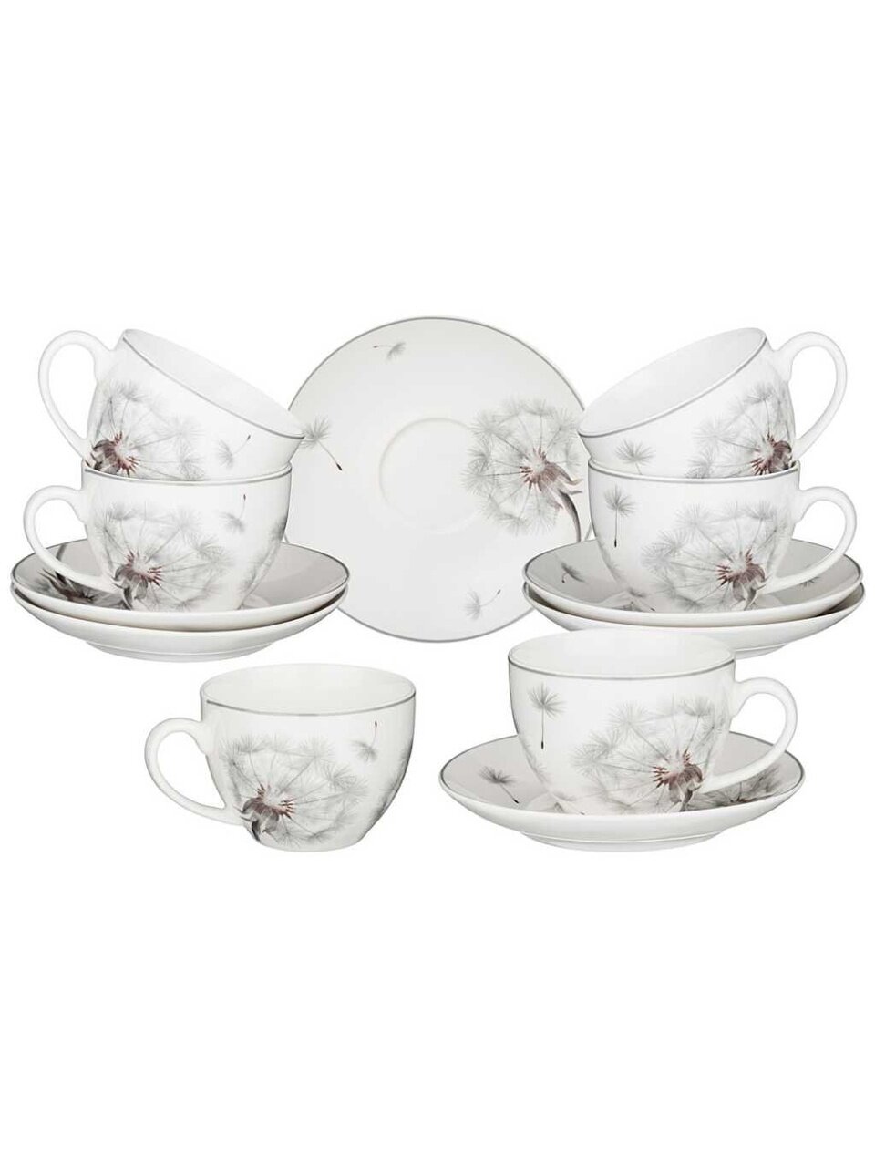 Чайный набор Lefard Dandelion на 6 персон — элегантный фарфор 280 мл, 12 предметов в подарочной упаковке для стильных чаепитий и эффектных подарков.