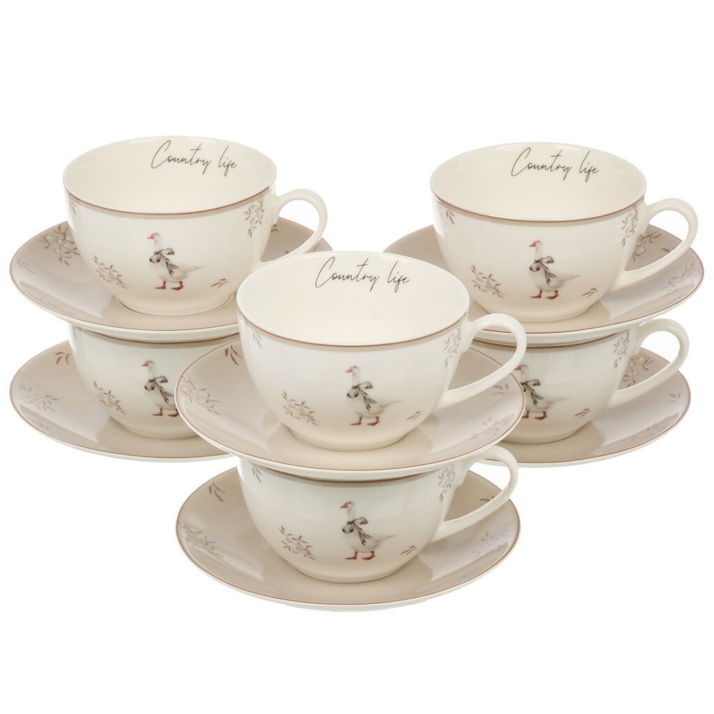 Набор включает 12 предметов, рассчитанных на 6 персон, что делает его идеальным выбором для встреч с друзьями и близкими. Каждая чашка объемом 280 мл и блюдце диаметром 15 см украшены изысканным рисунком, вдохновленным животным миром, что придаёт сервировке стола особый шарм и стиль. Белый цвет фарфора подчеркивает современный стиль и делает его универсальным для любого интерьера.