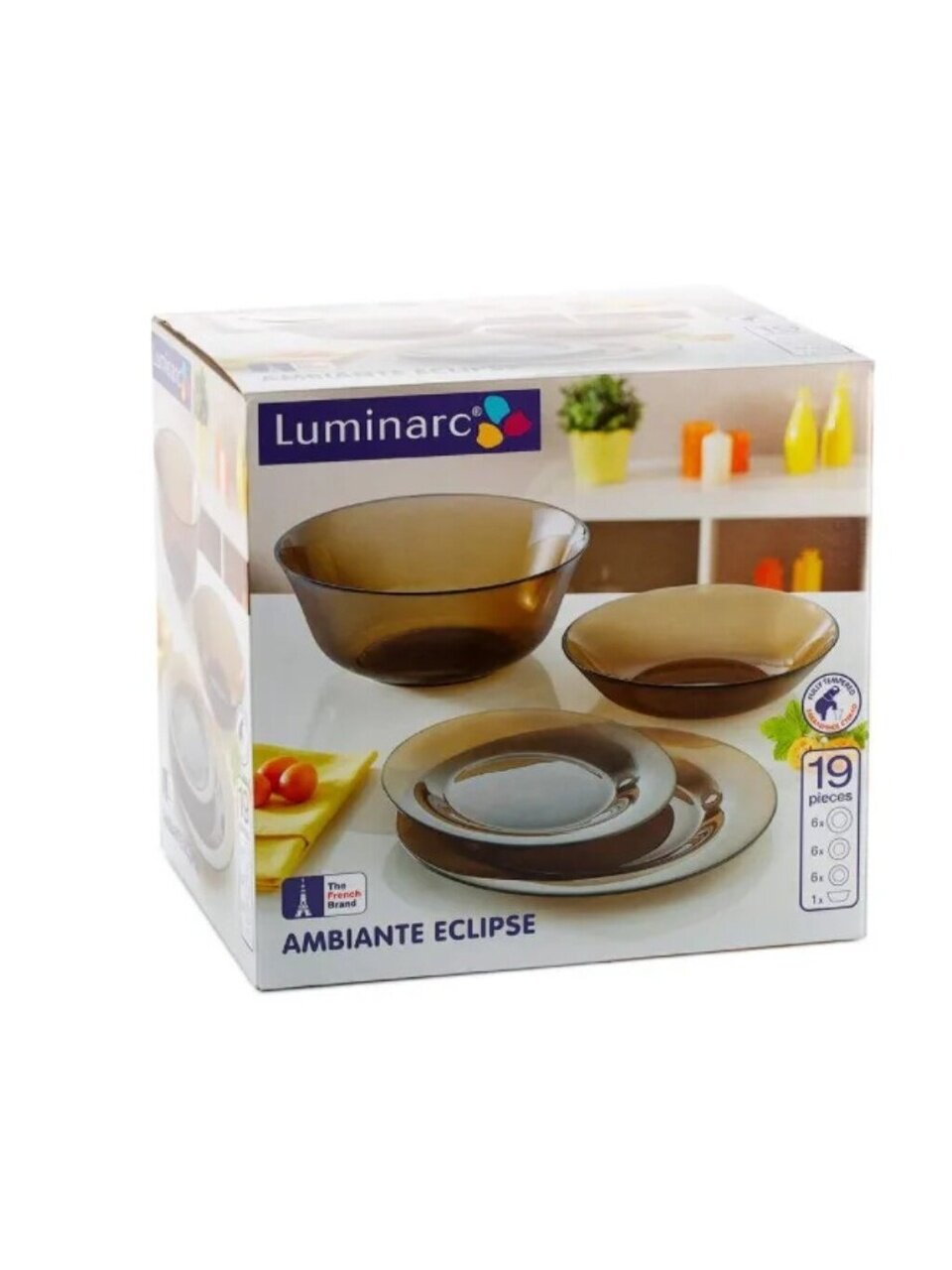 Столовый сервиз Luminarc Ambiante Eclipse на 6 персон — 19 предметов из закалённого стекла для стильной сервировки дома, дачи и подарка. Мытьё в ПММ и использование в СВЧ — комфорт каждый день.