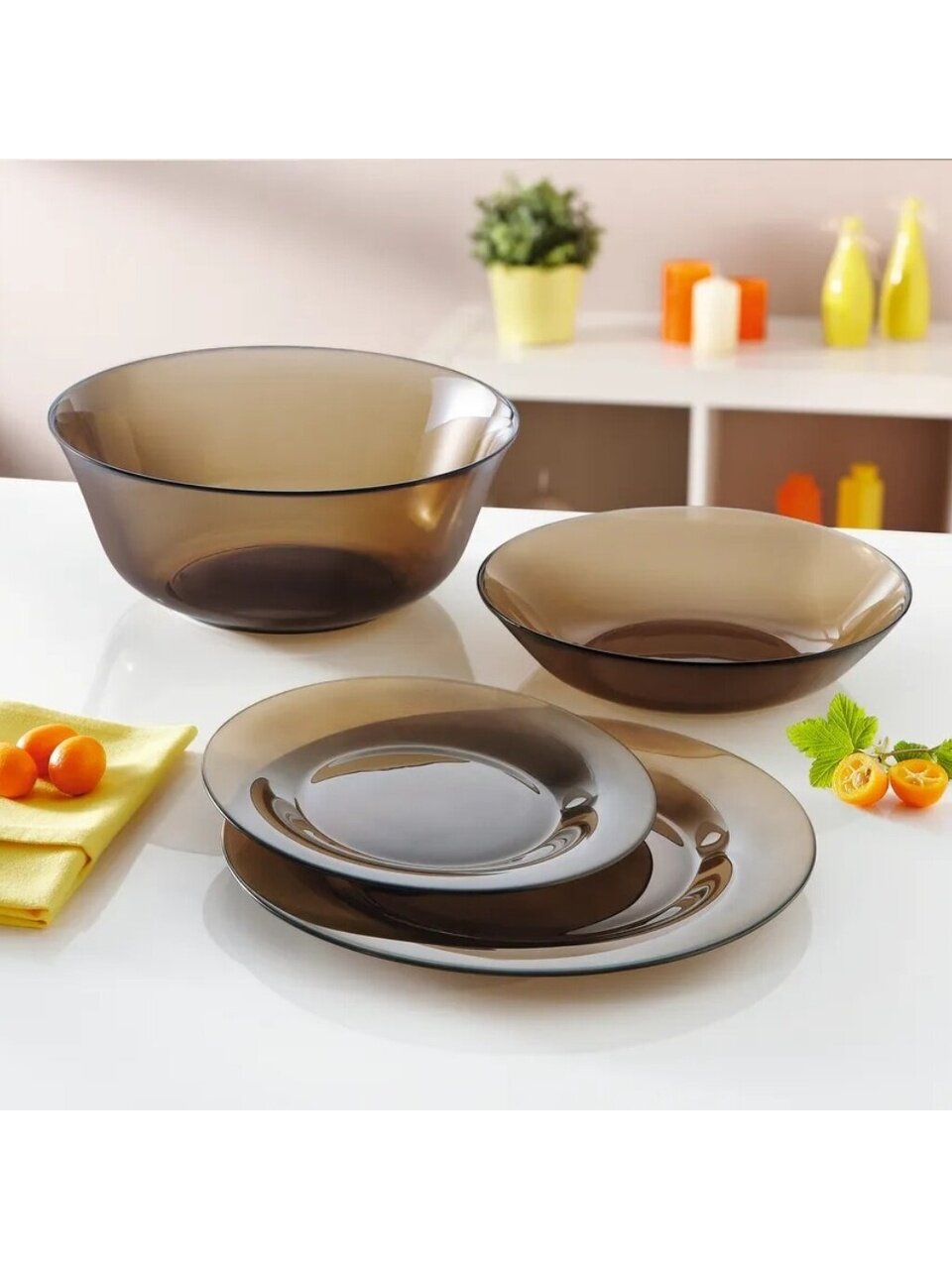 Столовый сервиз Luminarc Ambiante Eclipse — это выбор тех, кто ищет сочетание эстетики и практичности. Закалённое стекло не впитывает запахи, устойчиво к сколам и подходит для ежедневного использования. Благодаря универсальному коричневому оттенку сервиз гармонично впишется в любой интерьер — от классики до модерна. Часто спрашивают, какой столовый сервиз выбрать для подарка или семейных ужинов — Luminarc Ambiante Eclipse подойдёт для обеих задач, ведь его можно мыть в посудомоечной машине и использовать в микроволновке.