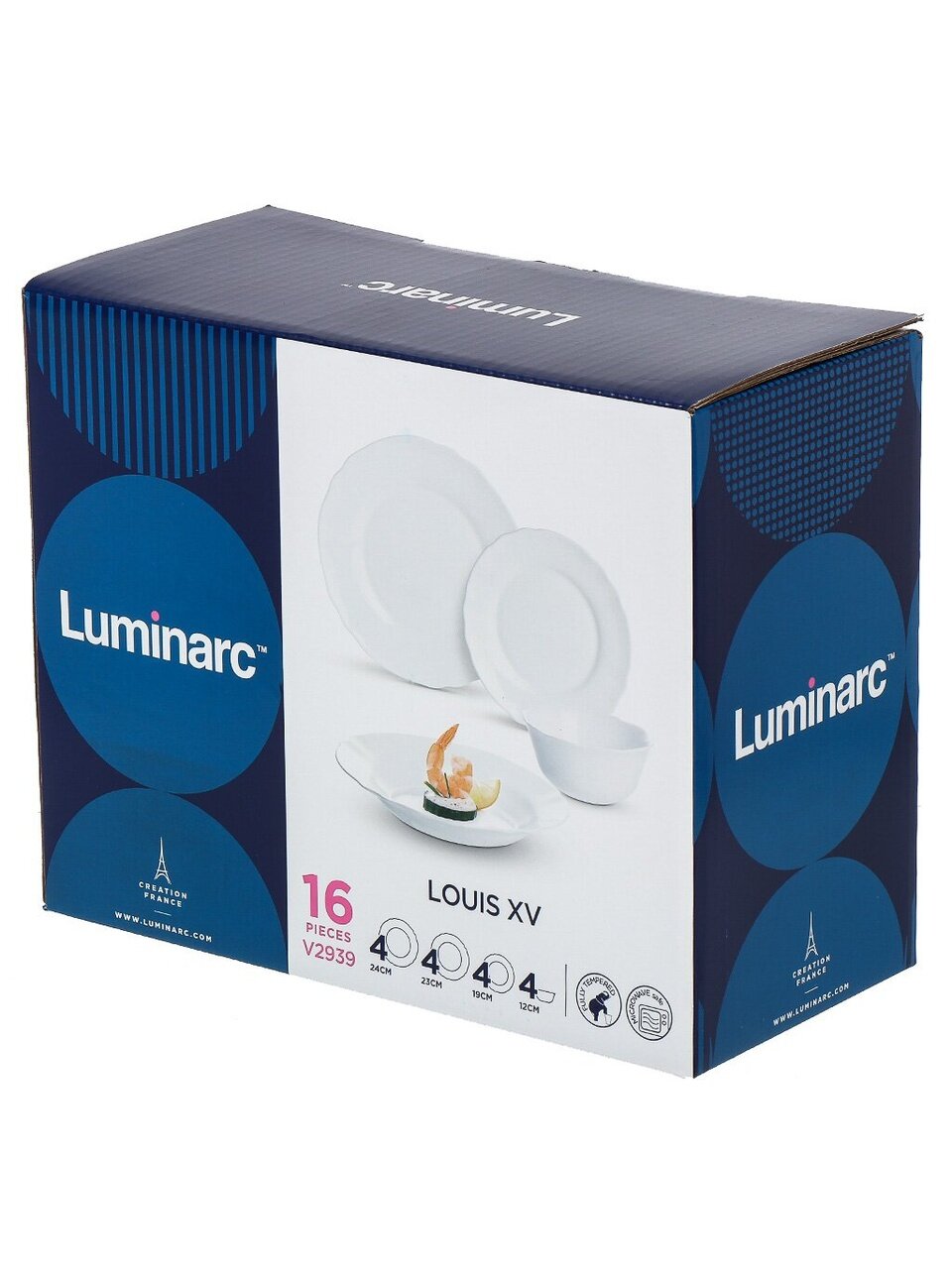 Столовый сервиз Luminarc Louis XV на 4 персоны: 16 предметов из прочной стеклокерамики для стильной сервировки дома, дачи или подарка — безопасно для СВЧ и посудомойки.