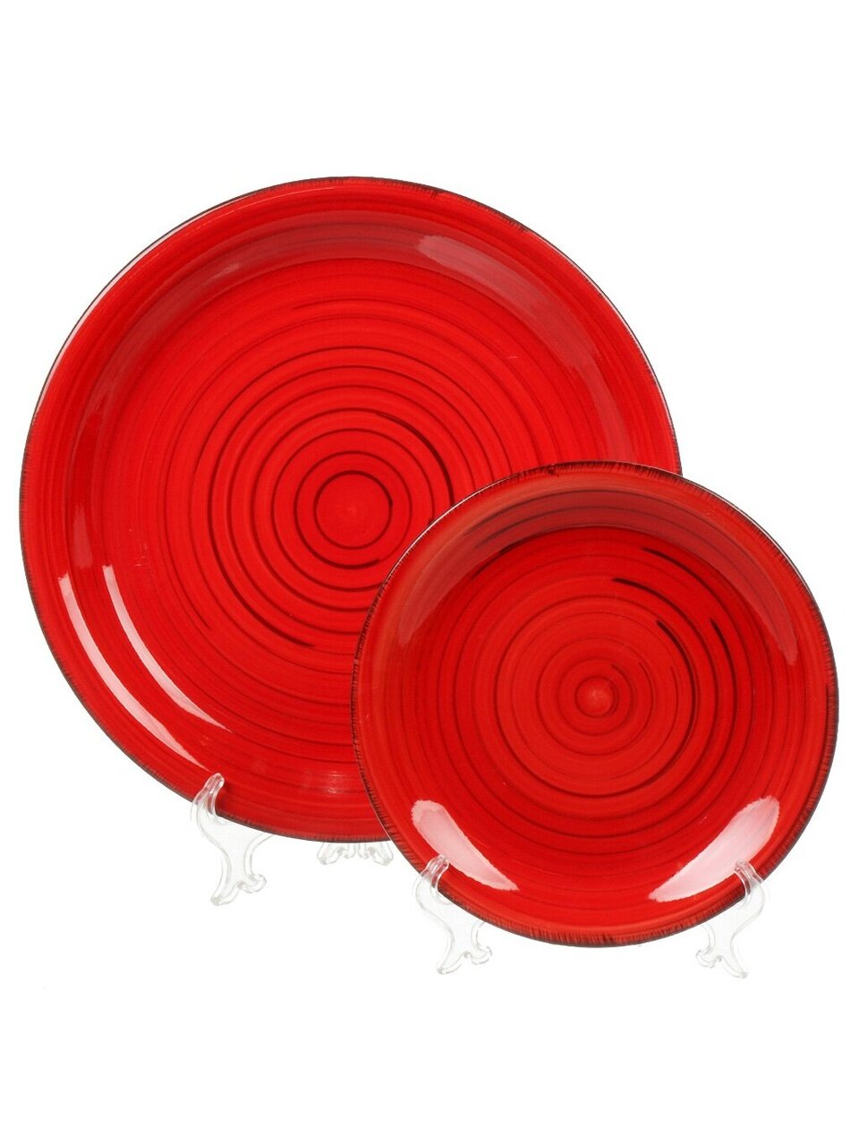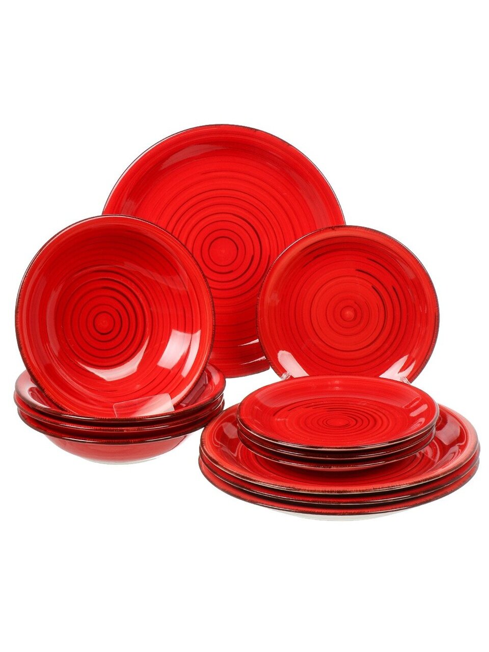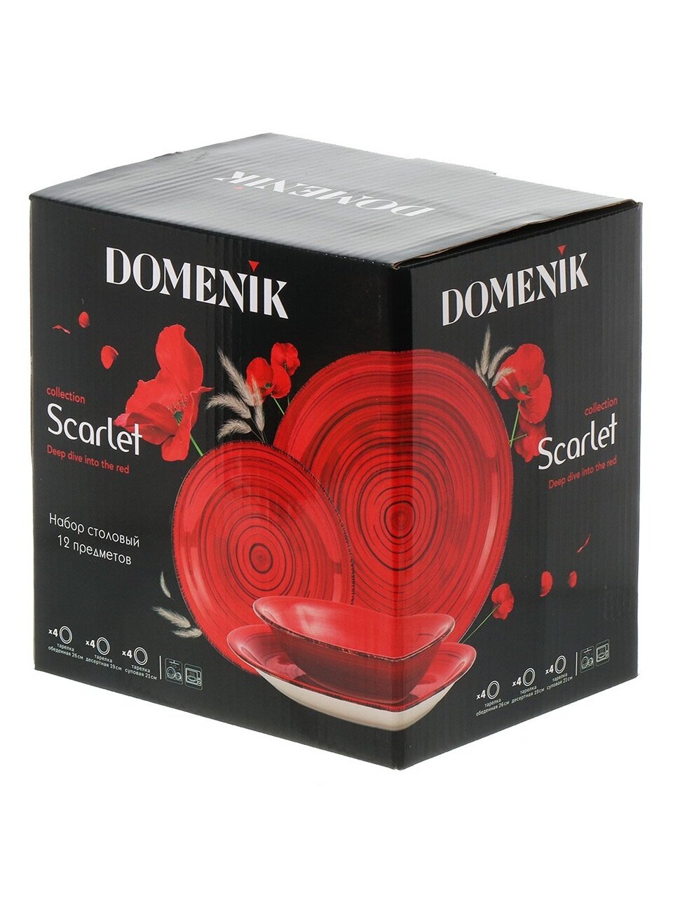Сервиз столовый керамика Domenik Scarlet на 4 персоны: 12 предметов для стильной сервировки, подходит для СВЧ, посудомойки, с подарочной упаковкой.