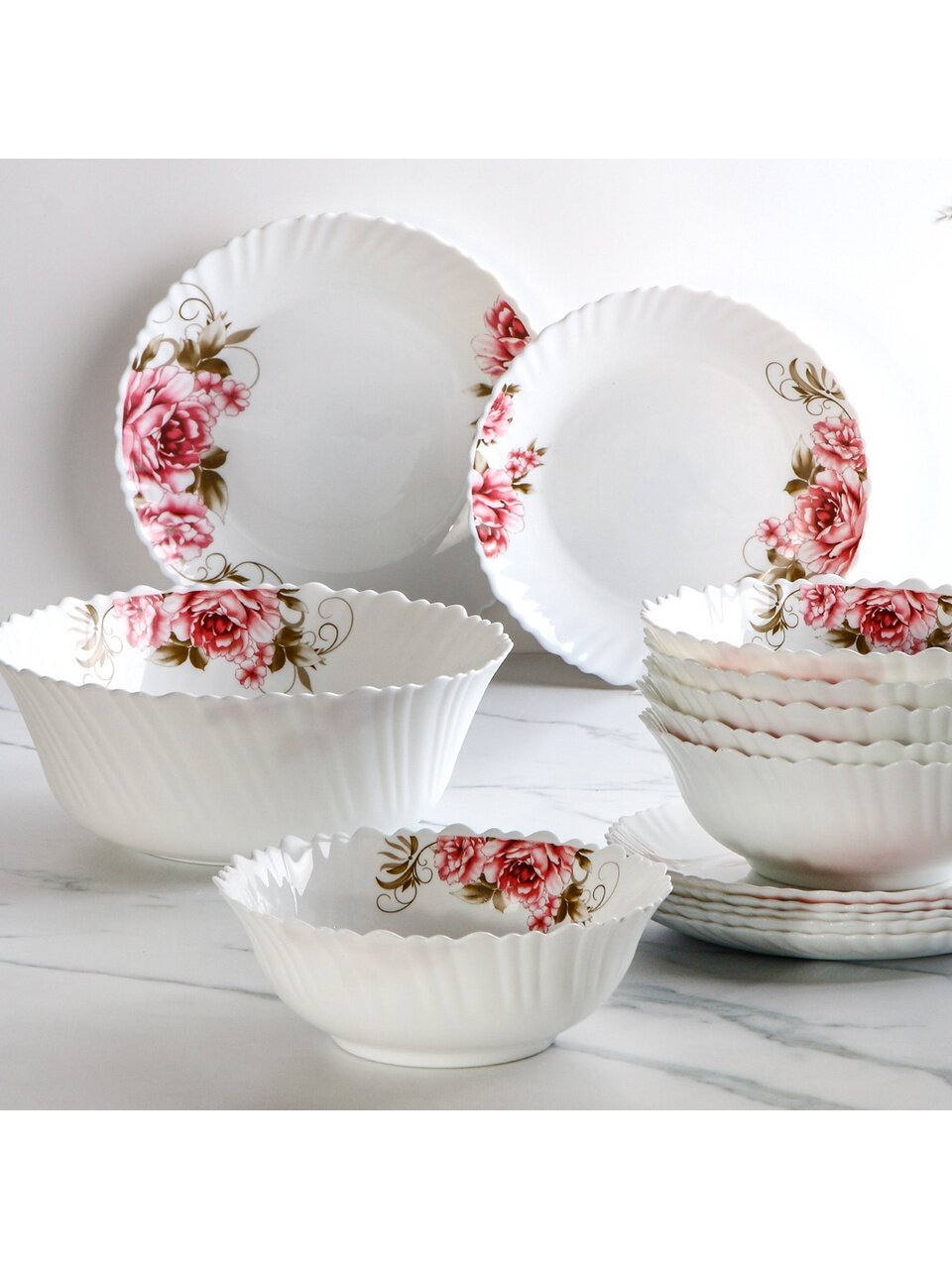 - Практичность: 19 предметов из закалённой стеклокерамики, подходит для СВЧ и посудомоечной машины, рассчитан на 6 человек
