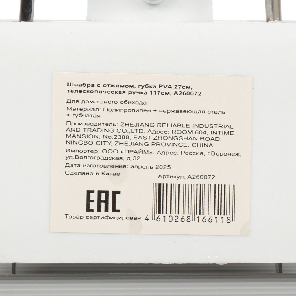 Вы можете приобрести «Швабра с отжимом, губка PVA 27см, телескопическая ручка 117см, A260072» и другие товары в нашем интернет-магазине в Шахтах по низким ценам и с бесплатным самовывозом.