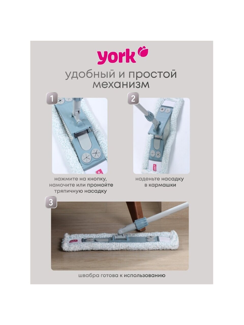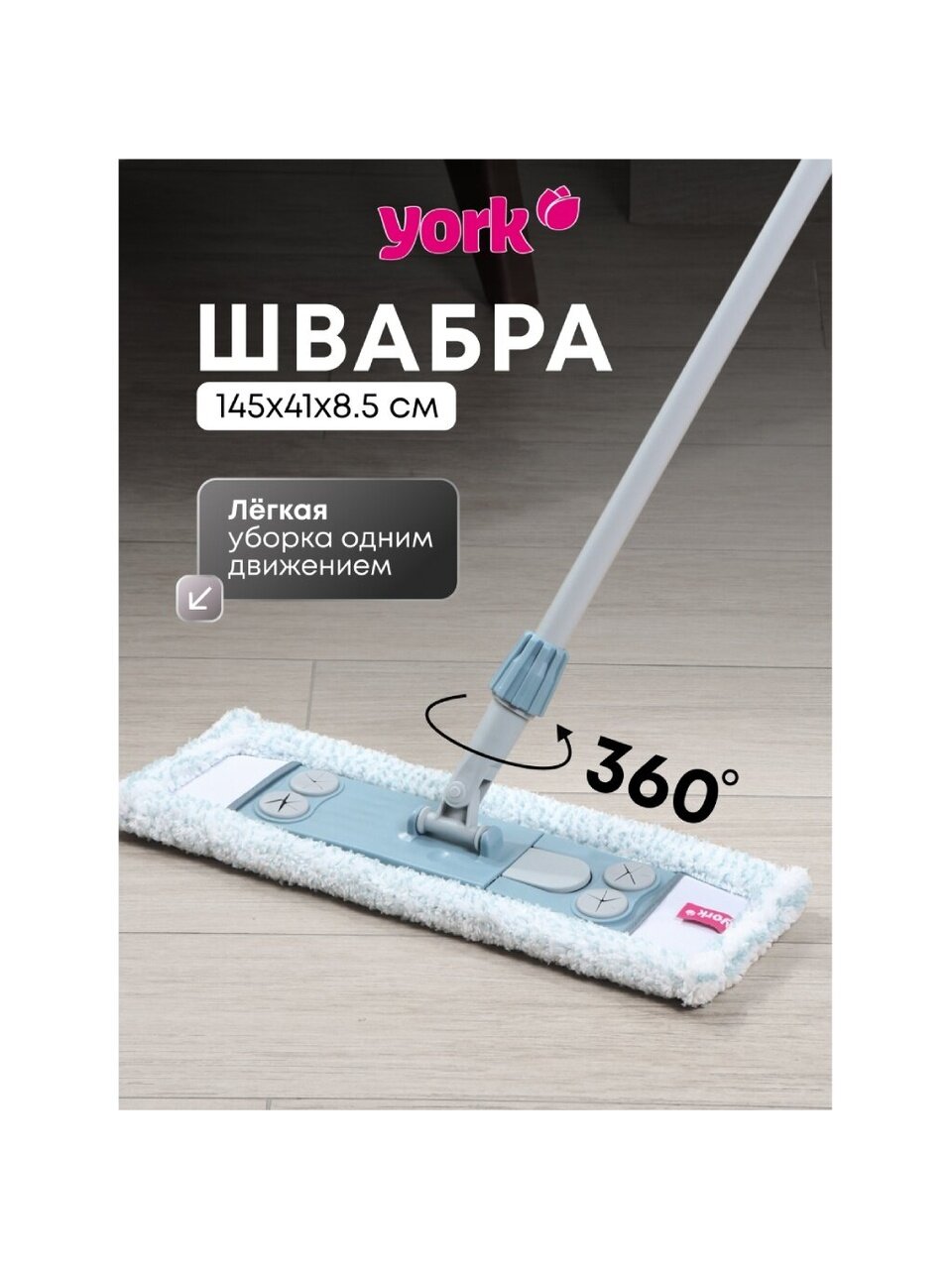 Швабра МОП York Magnetic с телескопической ручкой 145 см — быстрое решение для уборки пола, плитки и плинтусов без разводов и лишних усилий.