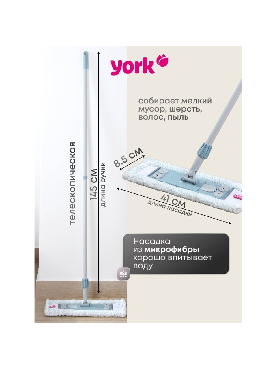 Швабра York Magnetic — это универсальный помощник для дома, дачи или офиса. Она подходит для уборки ванных комнат, кухонь, коридоров, а также станет отличным подарком для тех, кто ценит чистоту без лишних усилий. Лёгкая конструкция и отсутствие отжима делают её особенно удобной для ежедневного использования.