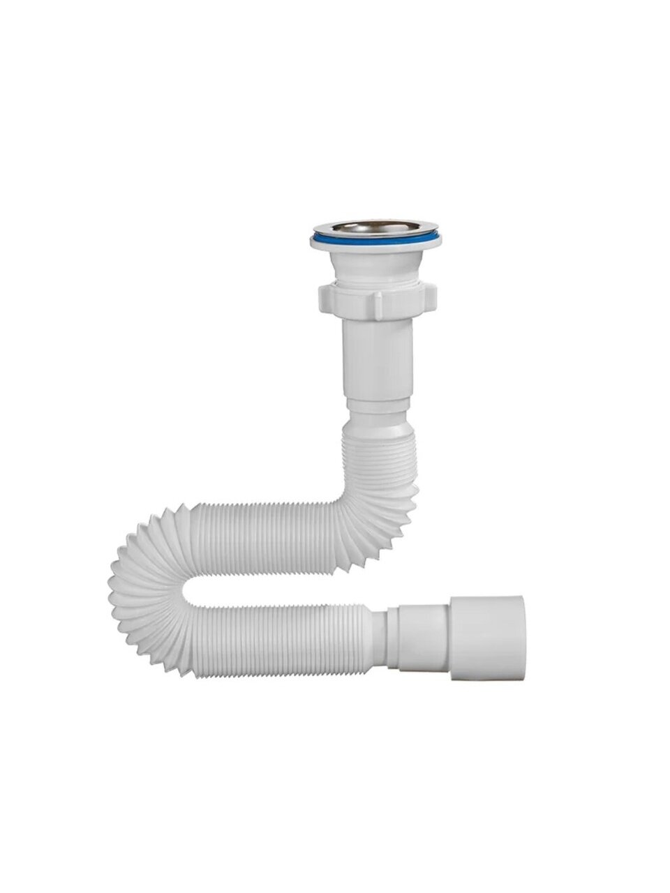 Гофрированный сифон – обладает простой конструкций, его часто используют, если под мойкой мало свободного пространства. Система может принять любую форму, ведь представлена гофрированной трубой, она легко складывается и раскладывается. Это компактный сифон для кухонной мойки.
