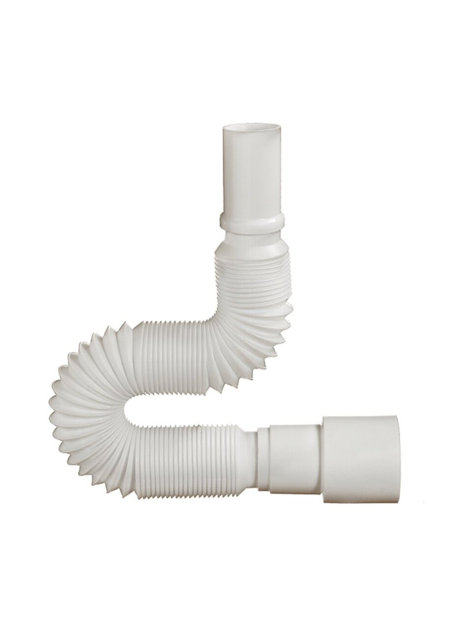 Гибкая гофрированная труба предназначена для слива воды из мойки или раковины. Она герметично соединяет сифон с канализационной сетью.