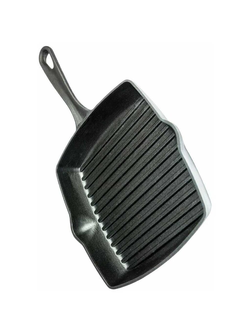 Сковорода-гриль Manoli из литого чугуна — выбор тех, кто хочет готовить стейки, рыбу или овощи с настоящим ароматом гриля. Рифленое дно оставляет аппетитные полоски, а толстое дно (7 мм) гарантирует стабильную температуру и экономит энергию. Если вы ищете, какую сковороду-гриль выбрать для дома или дачи, обратите внимание на отсутствие антипригарного покрытия: чугун со временем приобретает естественный слой, который предотвращает пригорание и улучшает вкус блюд.