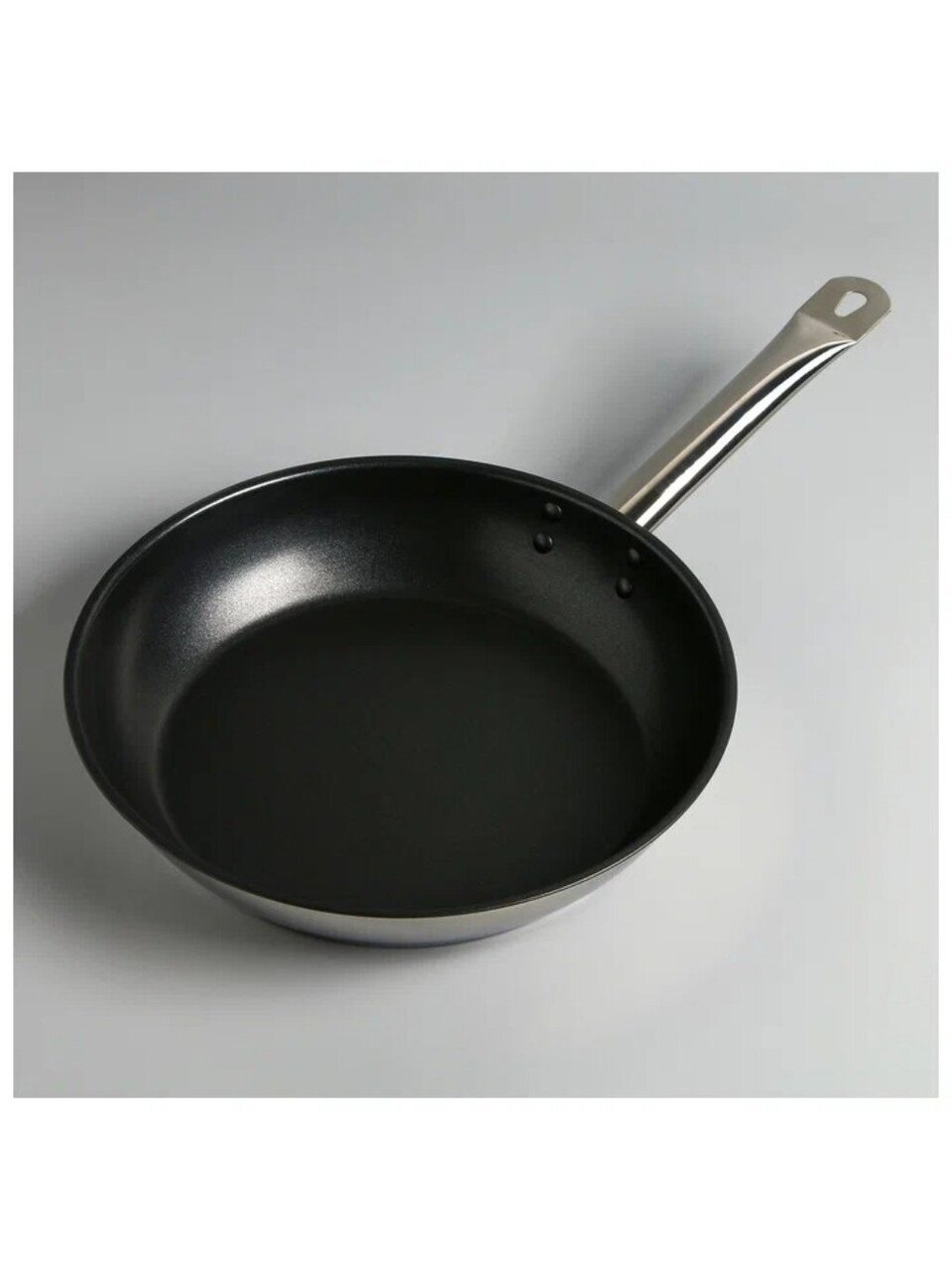 Сковорода из нержавеющей стали 30 см с антипригарным покрытием Xylan — идеальный выбор для индукционных плит, универсальна для жарки мяса, рыбы и омлетов.