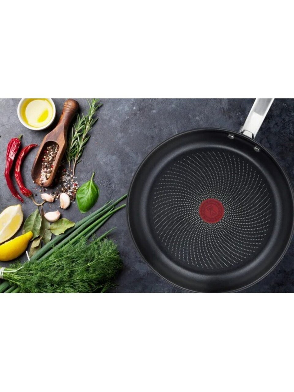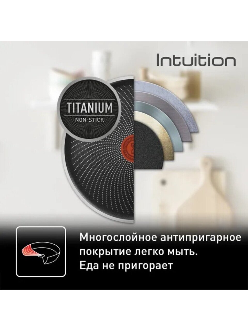 Сковорода Tefal Intuition 26 см: антипригарное титановое покрытие, подходит для индукции и всех плит. Долговечность, универсальность, стильный дизайн.