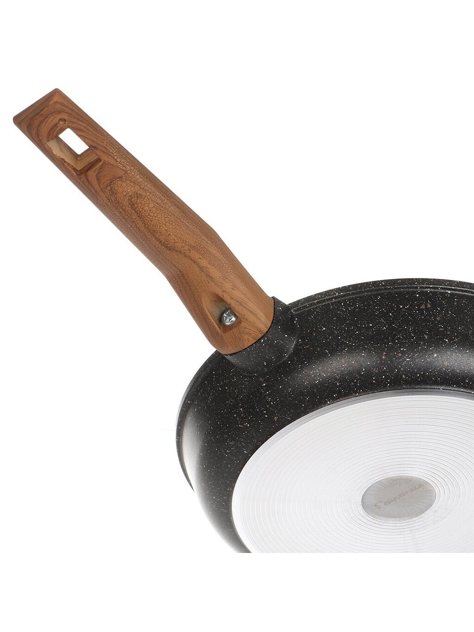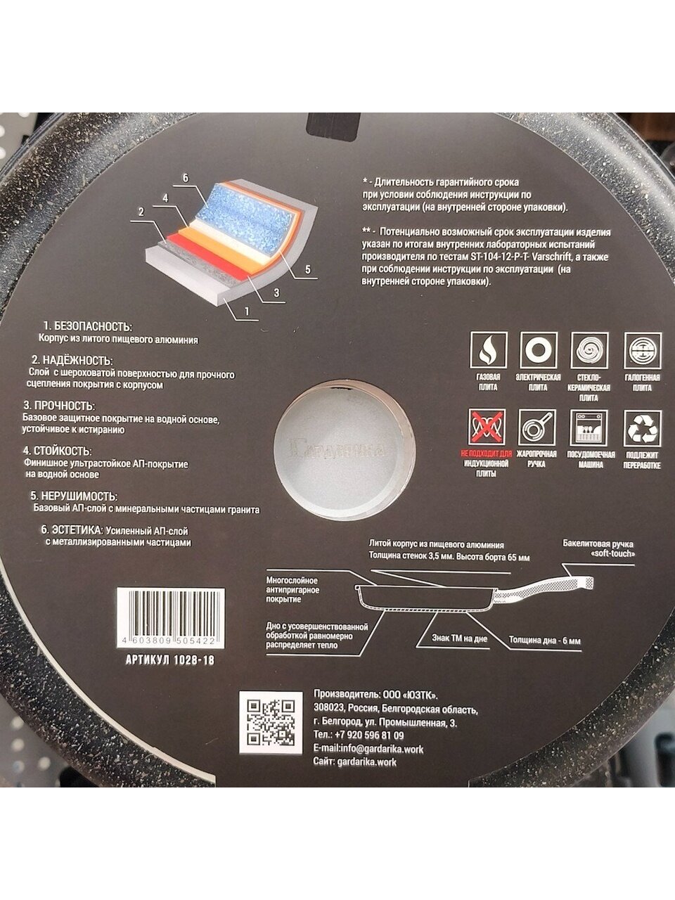 В отличие от классических тонкостенных моделей, литой алюминий с толщиной дна 6 мм обеспечивает равномерное распределение тепла и устойчивость к деформации. Вы спрашиваете: чем отличается гранитное покрытие? Оно долговечнее стандартного тефлона, устойчиво к царапинам и не выделяет вредных веществ при нагревании. Сковорода подходит для ежедневного использования, легко моется в посудомоечной машине и не требует специального ухода.