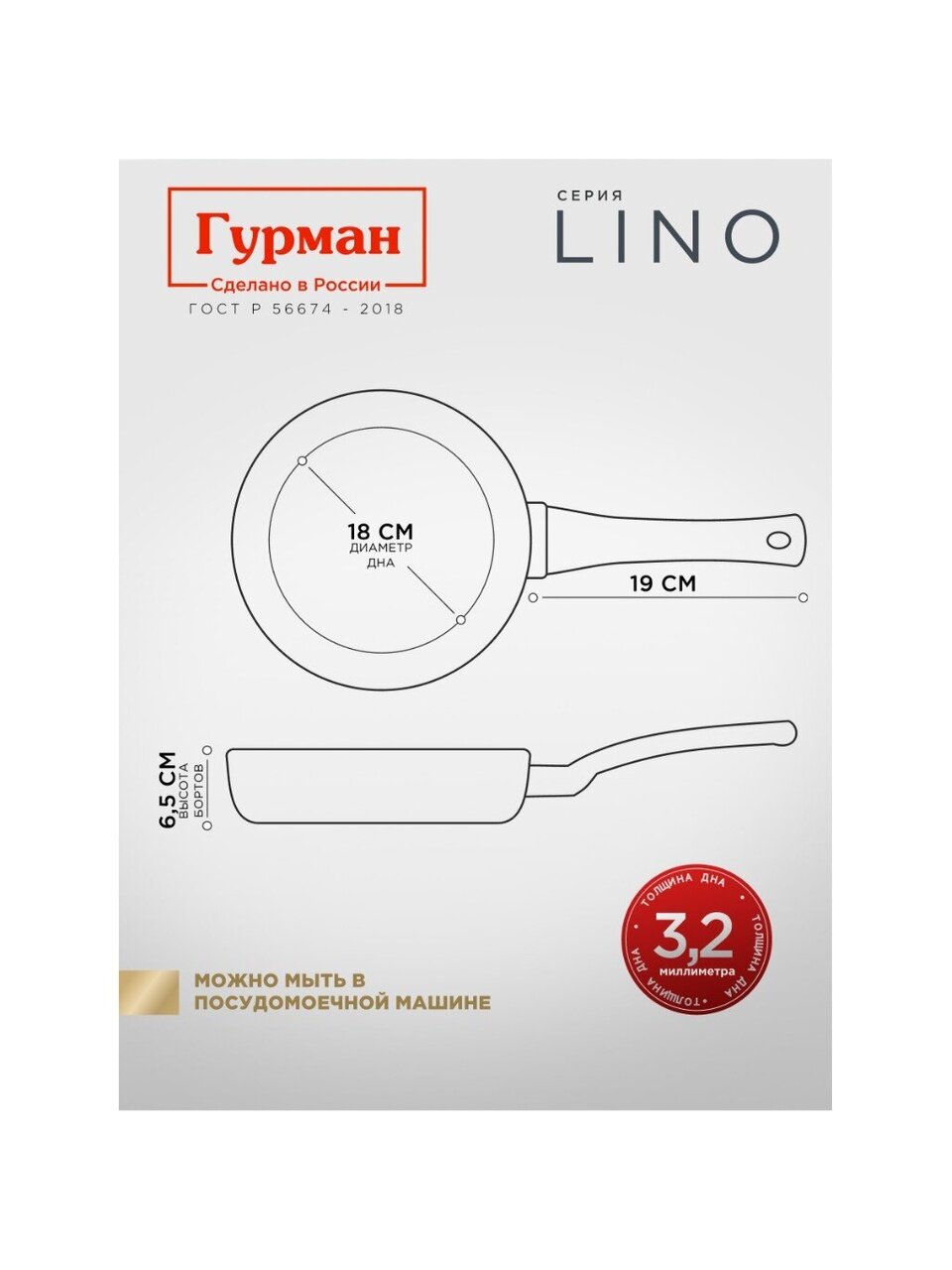 Сковорода Гурман Lino из литого алюминия с антипригарным покрытием PFLUON — оптимальный выбор для тех, кто ищет, какую сковороду купить для индукции или универсального использования. Благодаря толщине дна 3,2 мм и стенок 2,4 мм, жар равномерно распределяется, что позволяет готовить мясо, рыбу, омлеты и оладьи без пригорания. Часто спрашивают: «Подходит ли для посудомоечной машины?» — да, уход максимально простой.