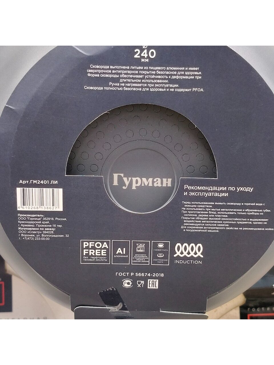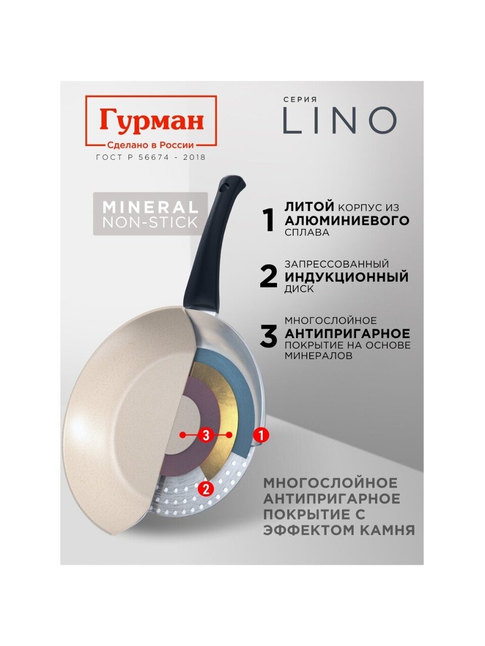 Сковорода литой алюминий 24 см Гурман Lino: антипригарное покрытие PFLUON, подходит для индукции. Гарантия 36 мес — идеальный выбор для дома и дачи.