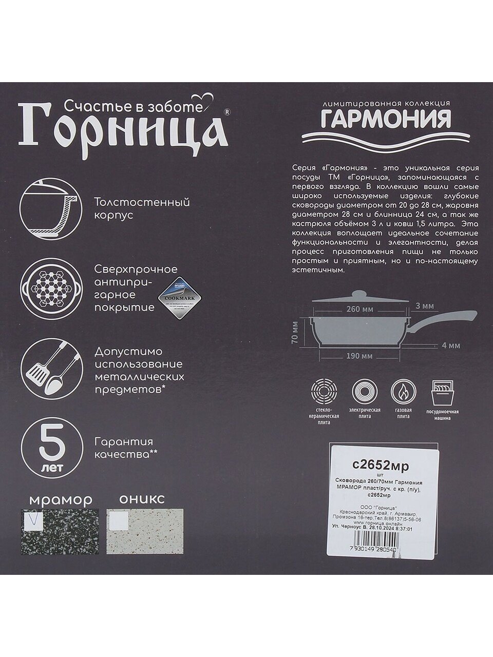 Закажите сковороду Горница Гармония Мрамор сейчас — получите оригинальный товар с гарантией 5 лет, быструю доставку и отличную цену. Идеальный вариант для дома, дачи или в подарок ценителям удобной и здоровой кухни.