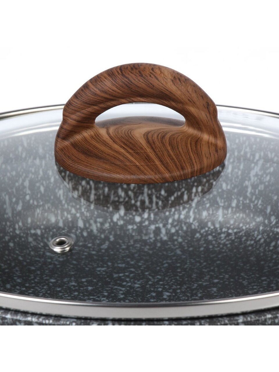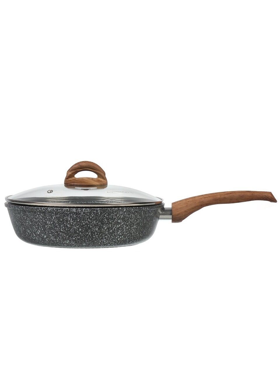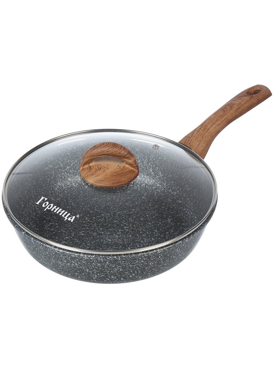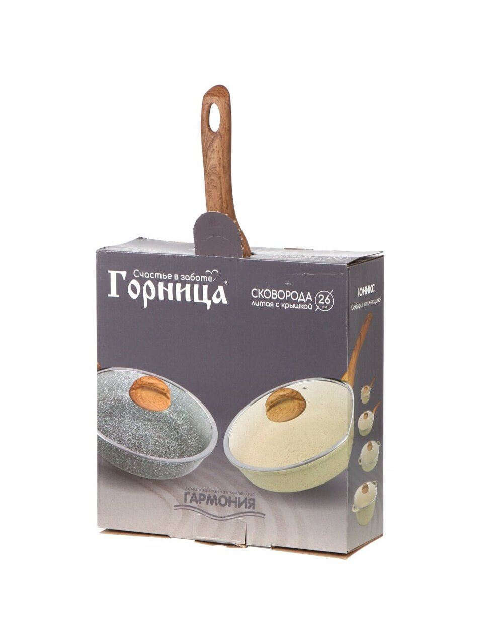 Сковорода Горница Гармония Мрамор 26 см с антипригарным покрытием и крышкой — прочная, долговечная, для идеальной жарки без пригорания и хлопот в уходе.