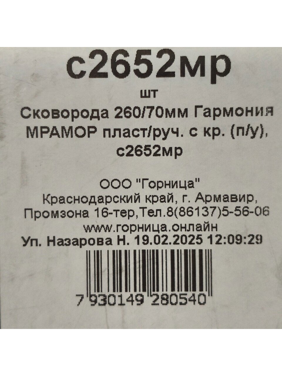 Вы можете приобрести «Сковорода литой алюминий, 26 см, антипригарное покрытие, Горница, Гармония Мрамор, с крышкой, с2652мр» и другие товары в нашем интернет-магазине в Смоленске по низким ценам и с бесплатным самовывозом.