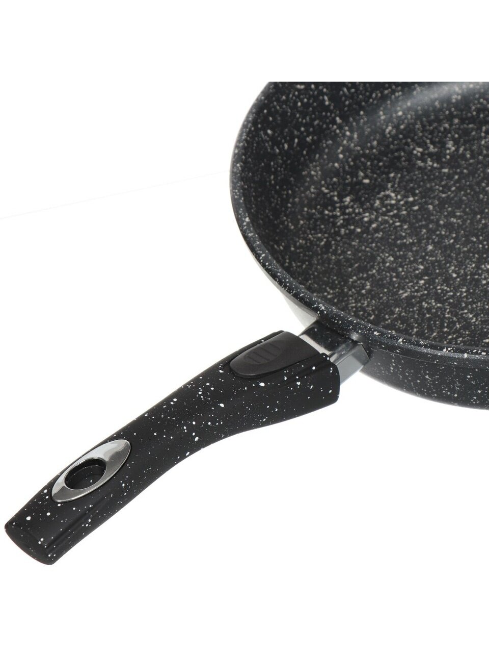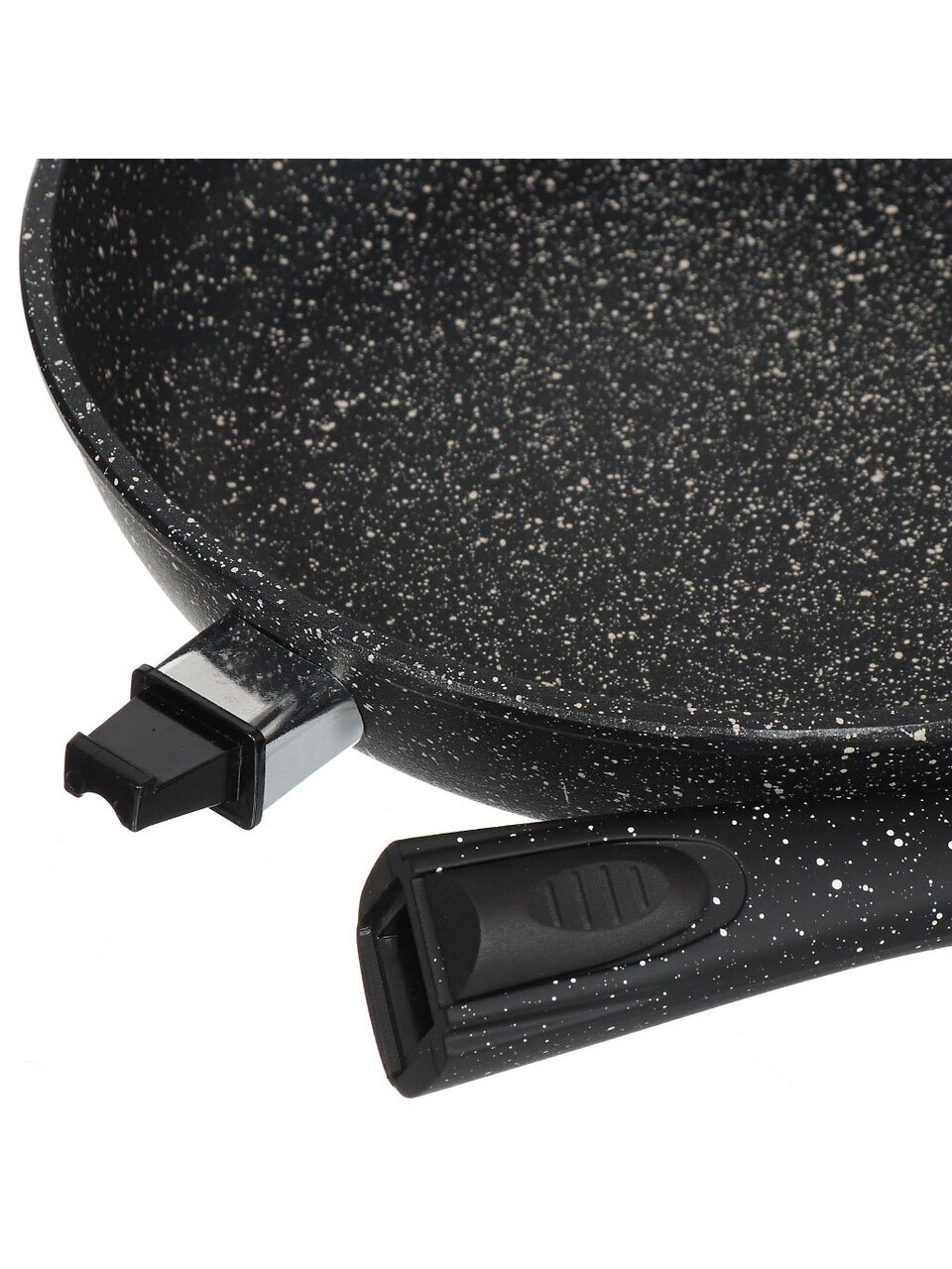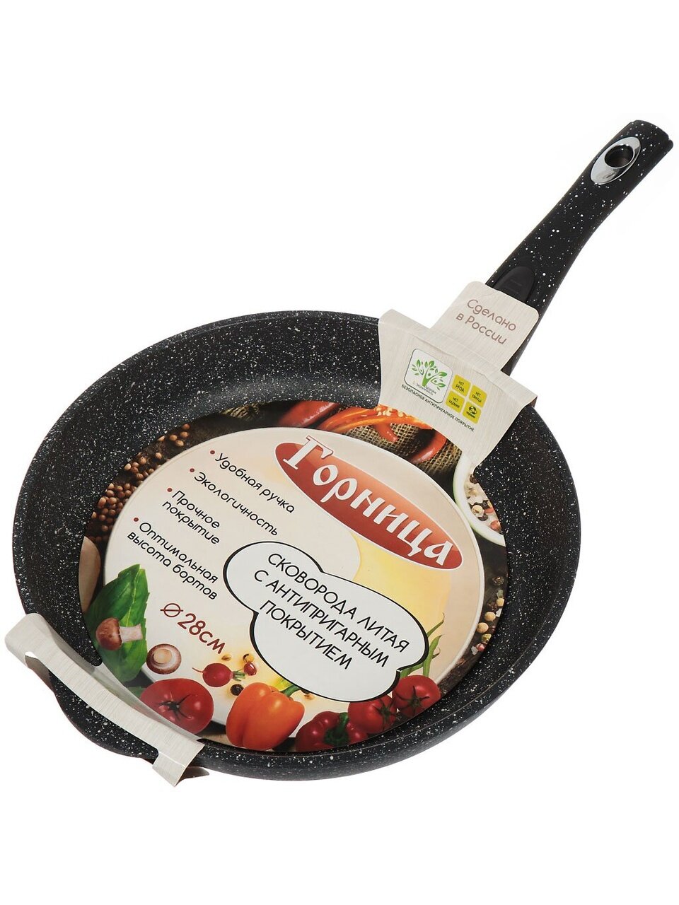 Сковорода литой алюминий 28 см Горница Гранит: антипригарное мраморное покрытие, съемная ручка, гарантия 5 лет — идеальный выбор для вкусных и полезных блюд дома и на даче.