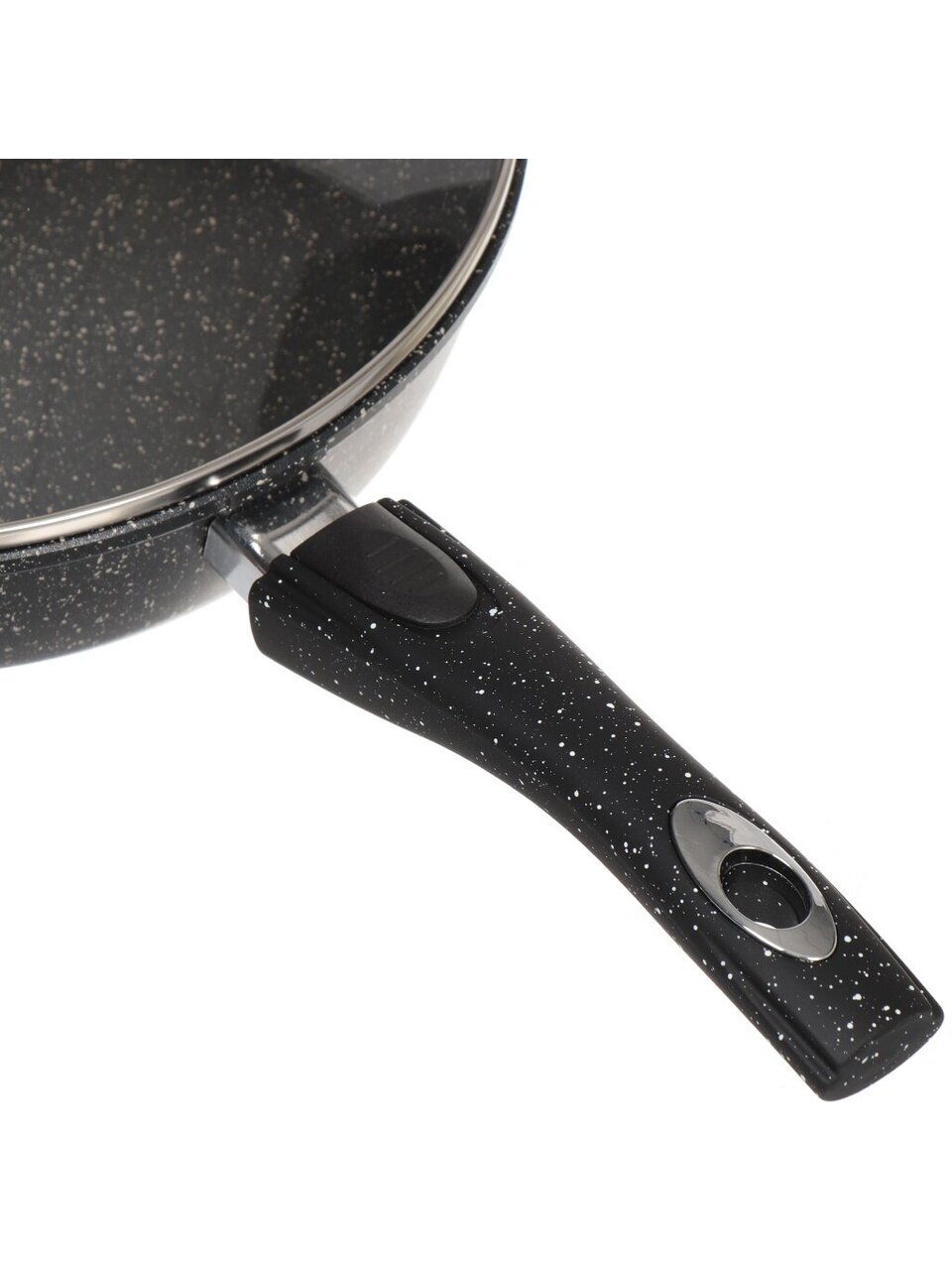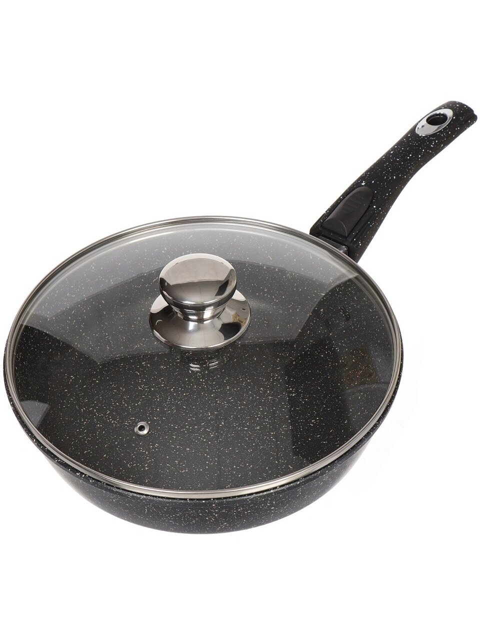 Сковорода Горница Гранит 26 см: литой алюминий, мраморное антипригарное покрытие, крышка и съемная ручка — универсальное решение для кухни и дачи.