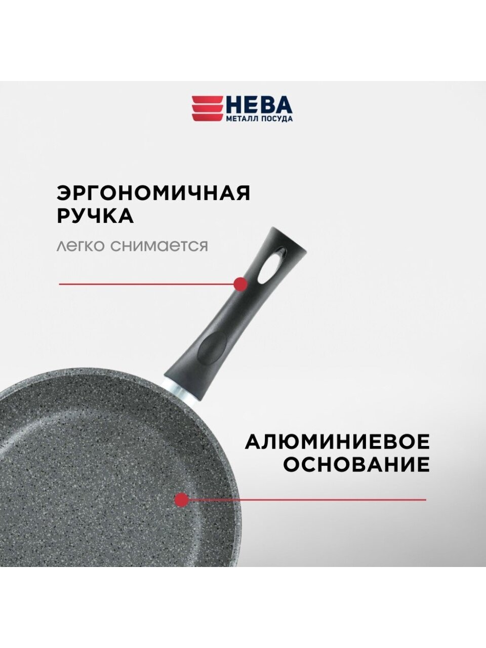Сковорода из литого алюминия Нева Металл Посуда Каменная 24 см — выбор тех, кто ищет долговечную посуду с антипригарным мраморным покрытием. Благодаря утолщенному дну (4 мм) и стенкам (2,8 мм) тепло распределяется равномерно, что предотвращает пригорание и помогает экономить энергию. Часто спрашивают: «Как использовать такую сковороду?» — она подойдет для мяса, рыбы, омлетов, оладий и даже жарки без масла.