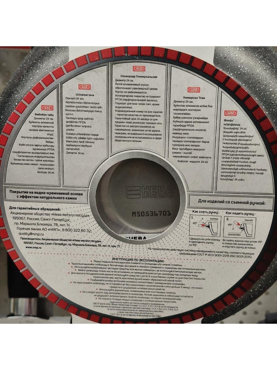 - Оптимальный диаметр 24 см, литой алюминий с толщиной дна 4 мм — равномерный нагрев, срок службы до 24 месяцев по гарантии
