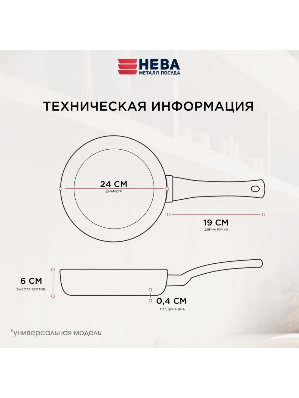 Сковорода литой алюминий 24 см Нева Металл Посуда — надежное антипригарное решение для кухни: жарьте мясо и омлет без масла, экономьте время и силы.