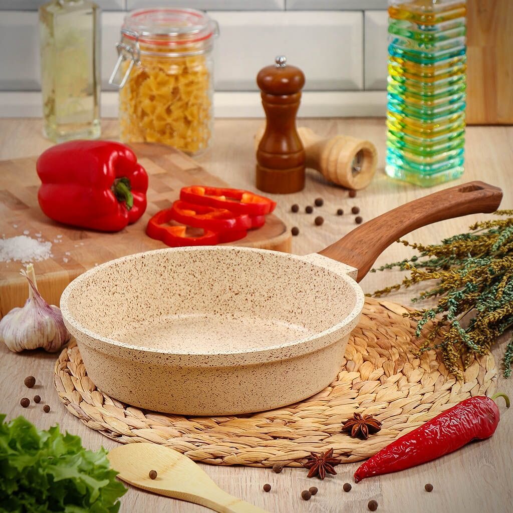 Сковорода литая Estima 20 см с гранитным антипригарным покрытием: идеальный выбор для индукции, готовьте вкуснее и проще без прилипания и масла.