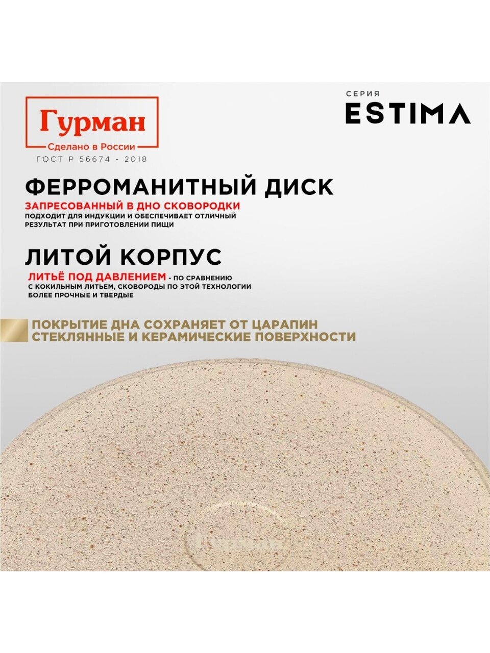Вы можете приобрести «Сковорода литой алюминий, 20 см, антипригарное покрытие, Гурман, Estima, бежевая, индукция, ГМ2001 ЭБИ» и другие товары в нашем интернет-магазине в Обнинске по низким ценам и с бесплатным самовывозом.