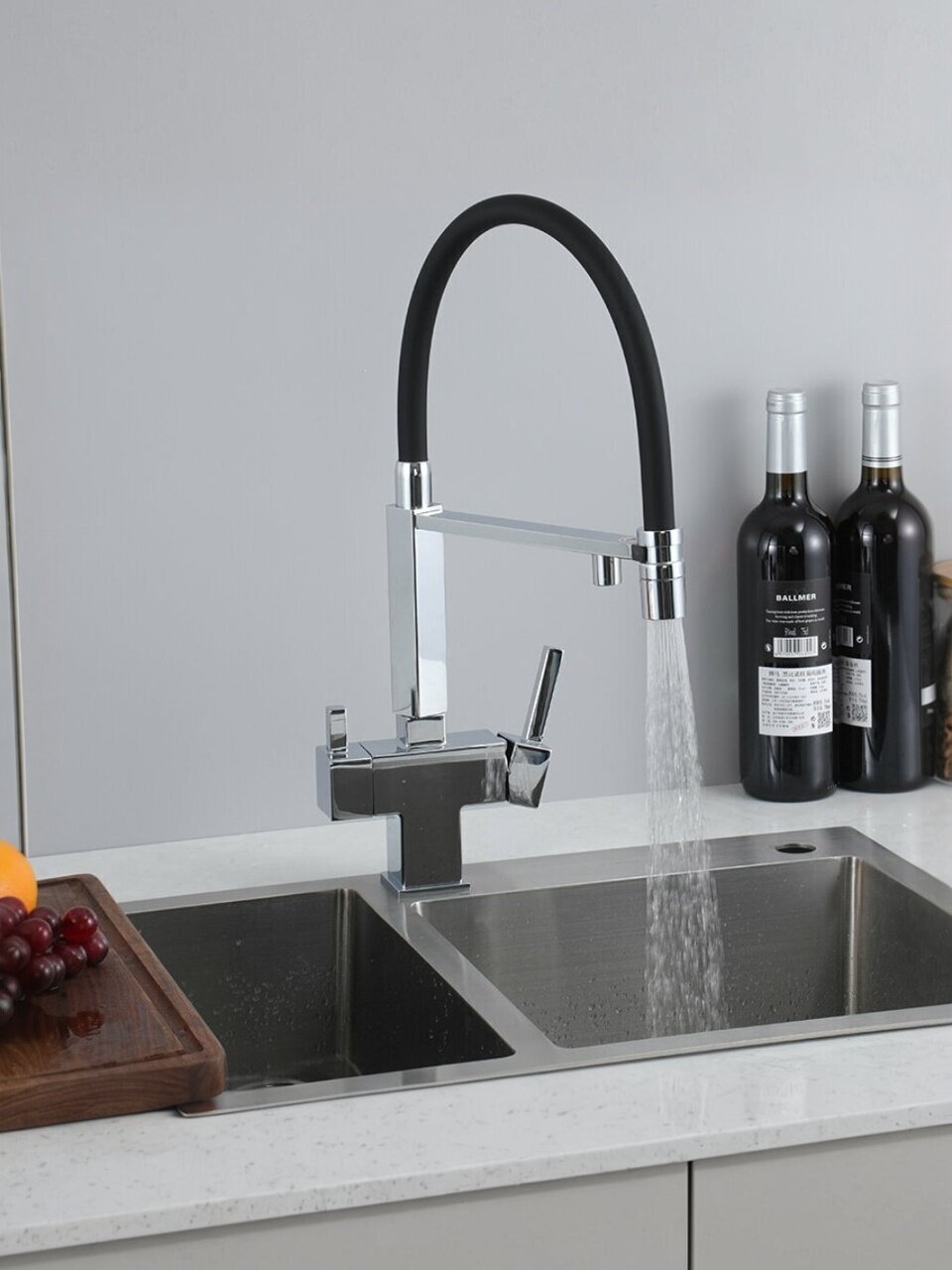 Как использовать смеситель с фильтром? Просто подключите фильтрующий элемент к дополнительному выходу — и получайте фильтрованную воду для приготовления пищи или напитков. По сравнению с аналогами, здесь реализована гибкая подводка и аэратор для экономии воды, что особенно актуально для дачи или загородного дома.