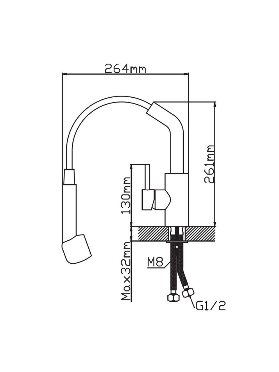 Смеситель для кухни, Potato, выдвижной излив, с картриджем, нержавеющая сталь, P0045S-6