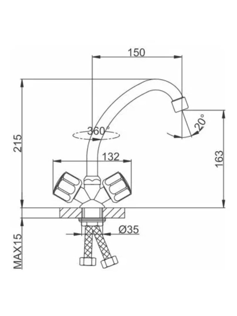 Высокий поворотный излив (16,3 см) и гибкая подводка позволяют комфортно мыть посуду любого размера, а глянцевая поверхность легко очищается от загрязнений.