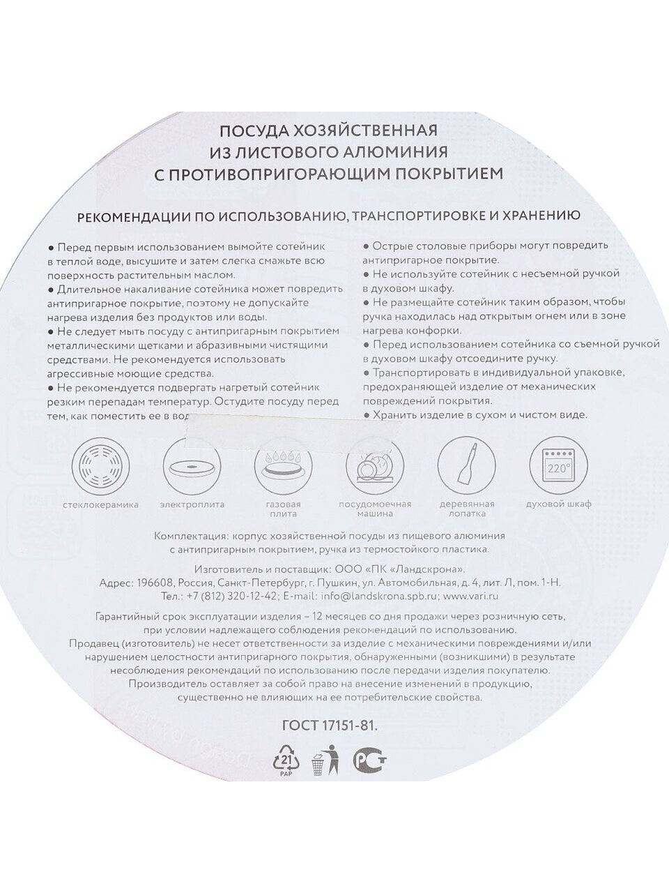 - Антипригарное покрытие: тефлоновое покрытие обеспечивает легкое снятие пищи и минимальное использование масла, что делает блюда более здоровыми;