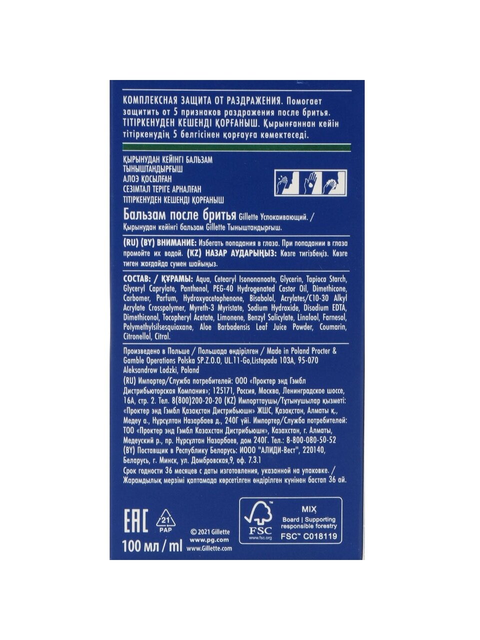 Бальзам после бритья Gillette Успокаивающий 100 мл — быстрое облегчение и защита кожи без стянутости, оптимальный уход для современных мужчин.