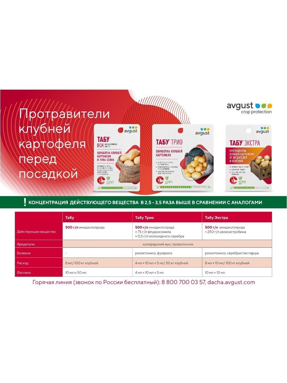 Вы можете приобрести «Инсектицид Табу, от колорадского жука, проволочника, протравитель клубней перед посадкой, жидкость, 10 мл, Avgust» и другие товары в нашем интернет-магазине в Таганроге по низким ценам и с бесплатным самовывозом.