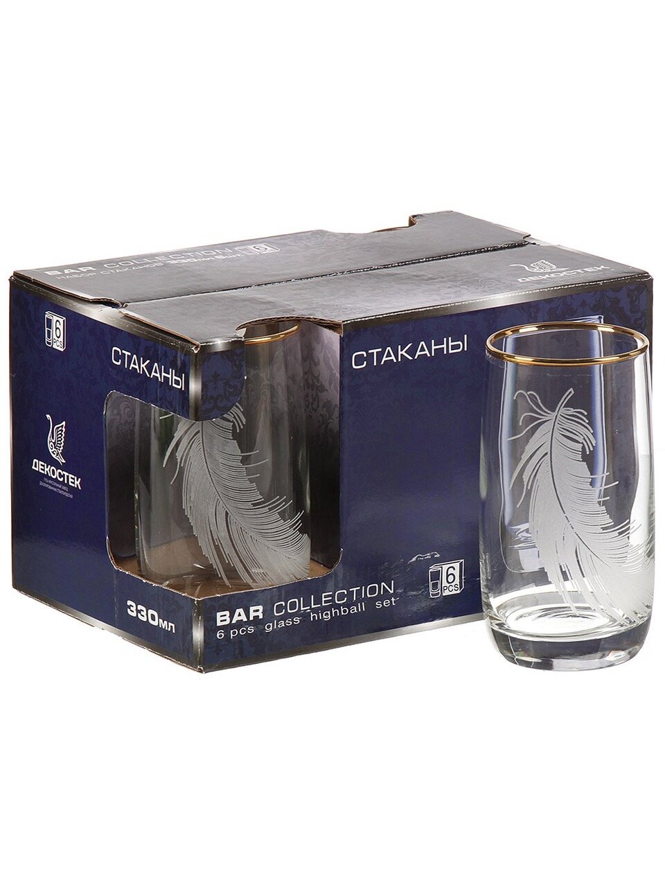 Набор стаканов 330 мл из стекла (6 шт, Декостек Перо, 158-ГЗ6) — стильный выбор для воды и сока: долговечность, универсальность, оптимальная цена.