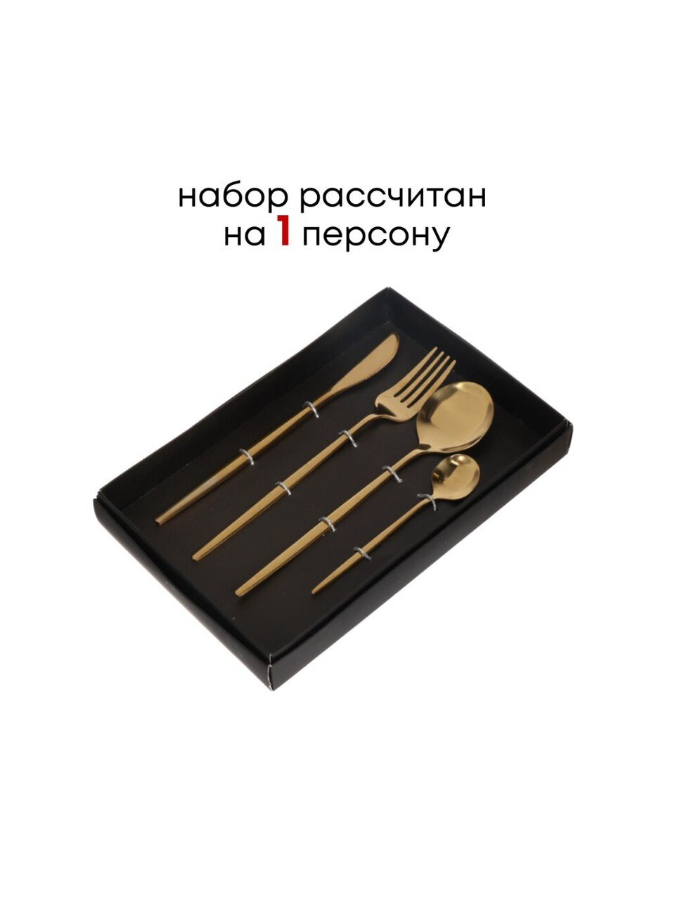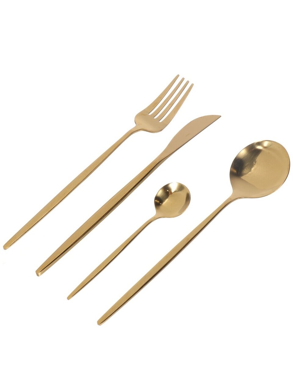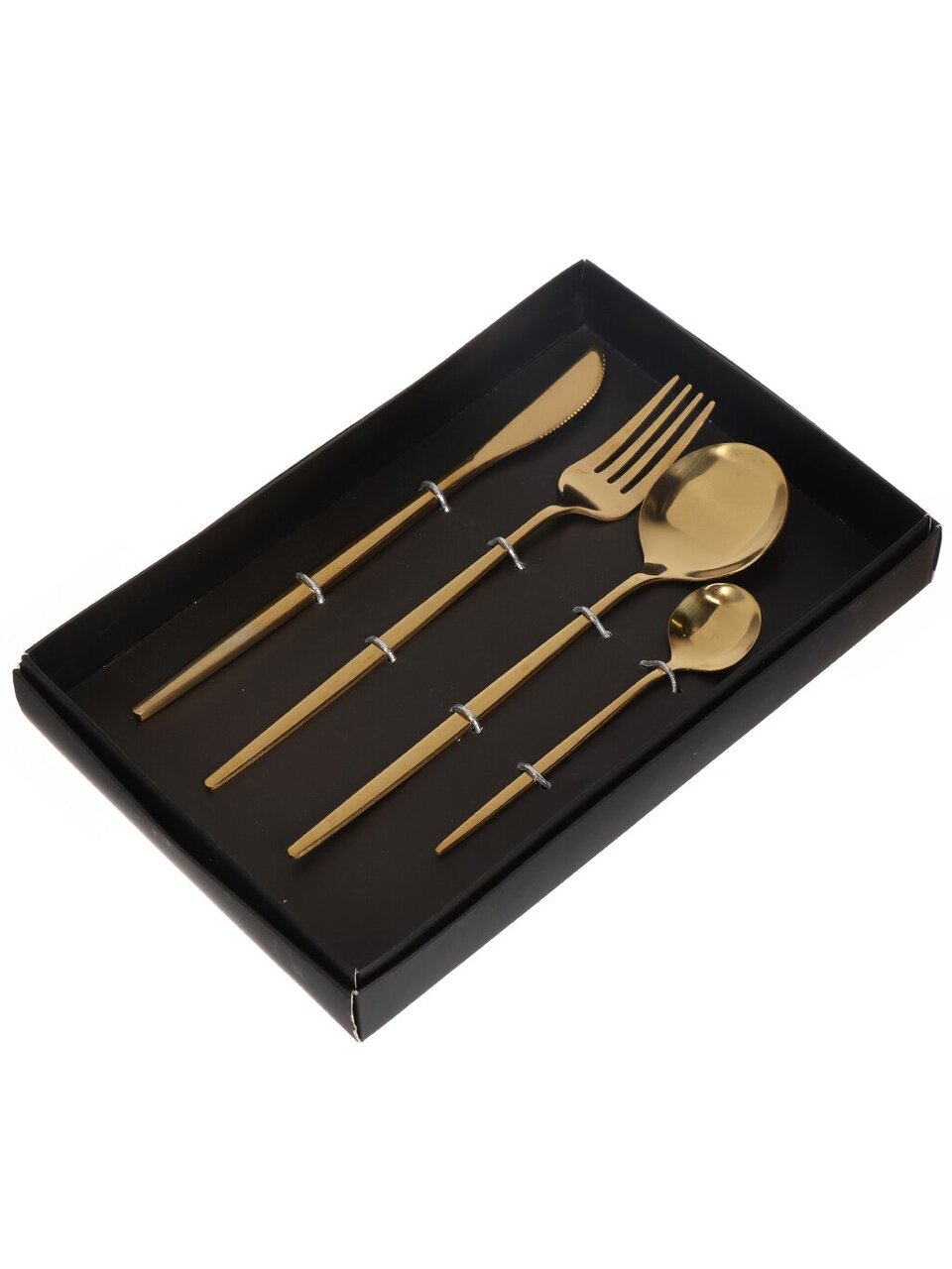 Подарочный набор столовых приборов из нержавеющей стали: 4 предмета, стильный золотой цвет, идеальный выбор для подарка или сервировки на одного.